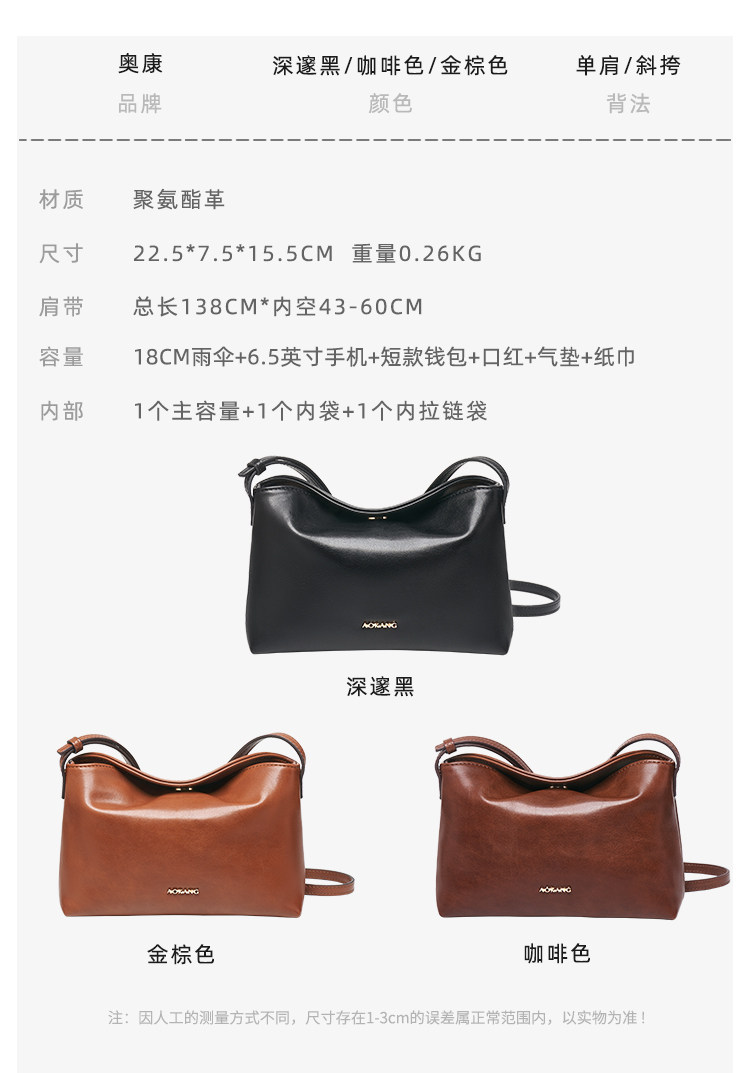 女神节礼物、奥康新款、轻奢百搭、托特包、通勤单肩、斜挎包
