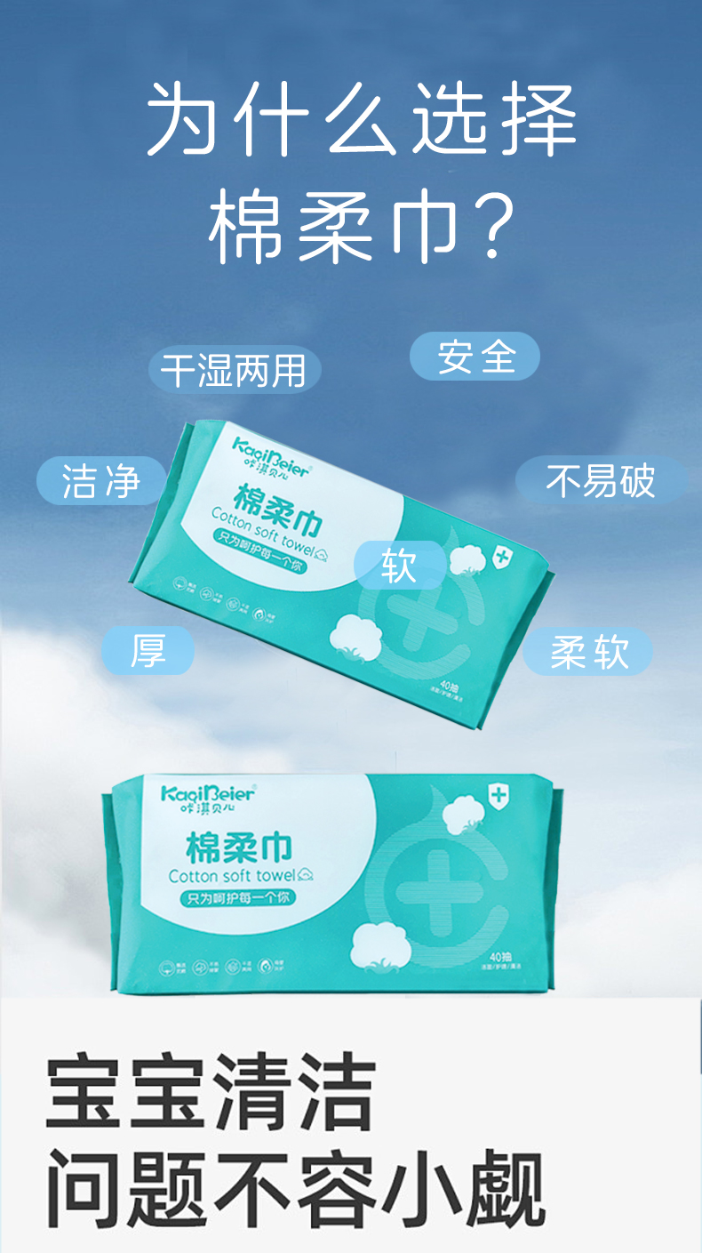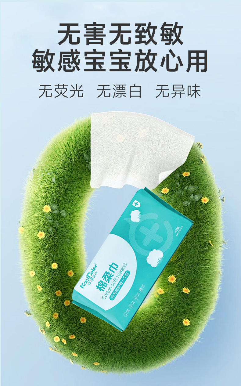 母婴通用、柔软亲肤、纯棉材质、干湿两用、洗脸巾、抽取式、婴儿绵柔巾