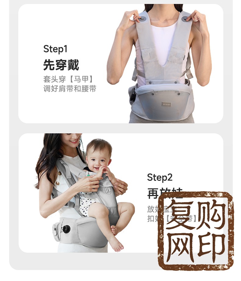 乐蒂宝贝、腰凳婴儿背带、二合一、轻便、四季多功能、透气、抱娃神器