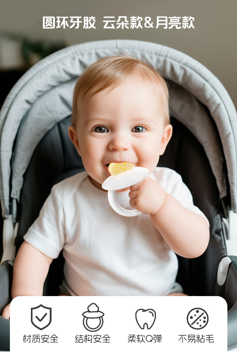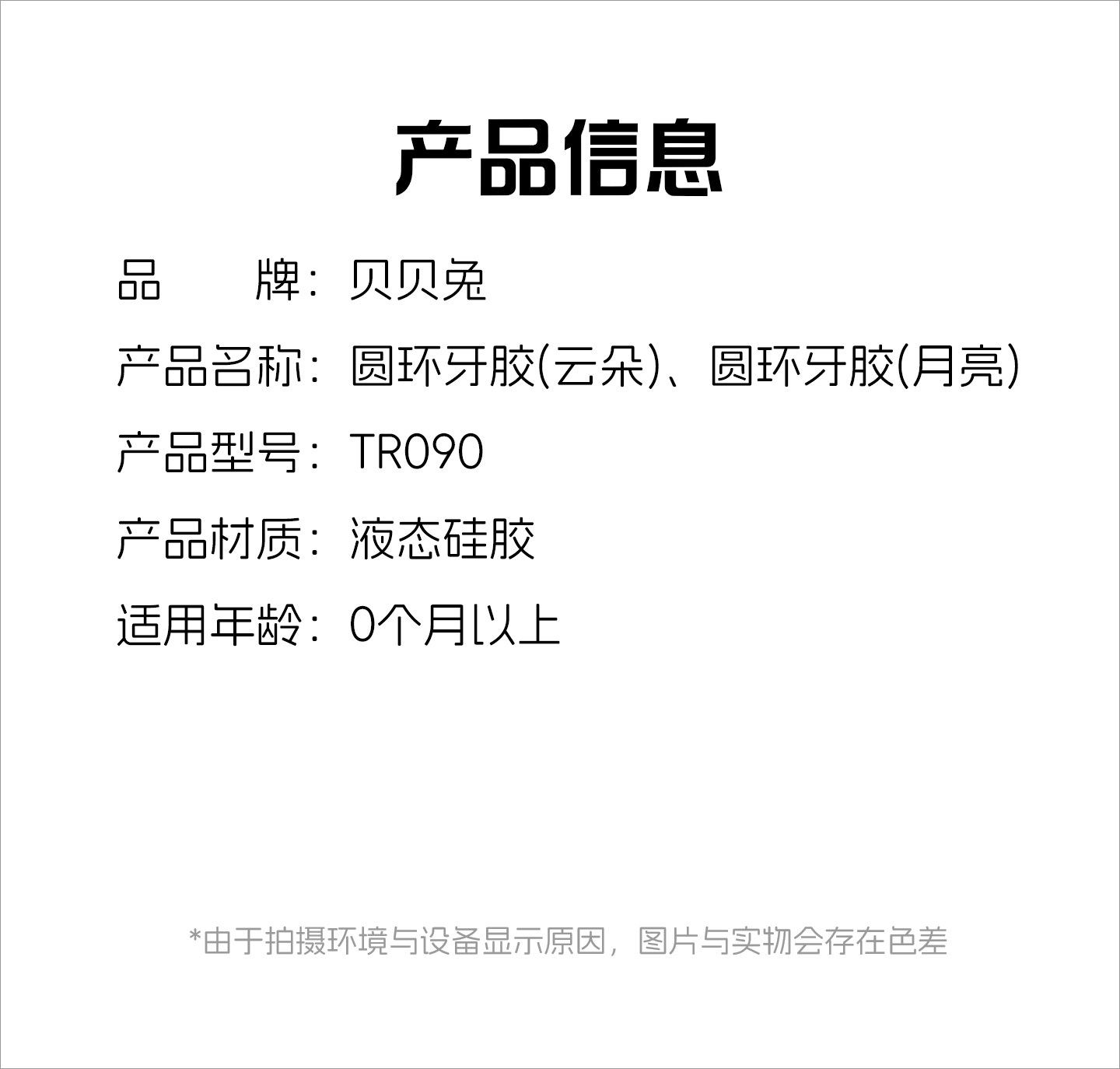 贝贝兔圆环牙胶磨牙棒婴幼儿宝宝牙咬胶口欲出牙期4-6-3-5个月