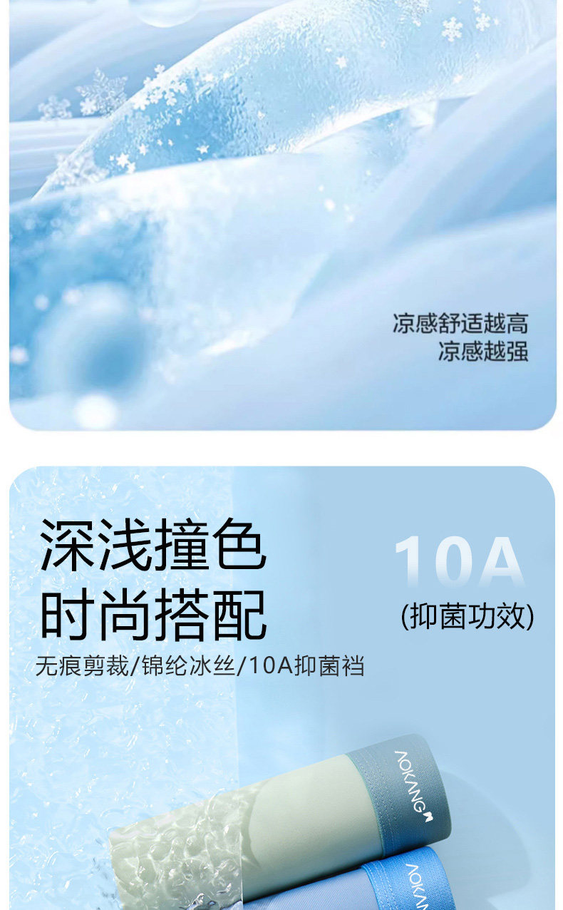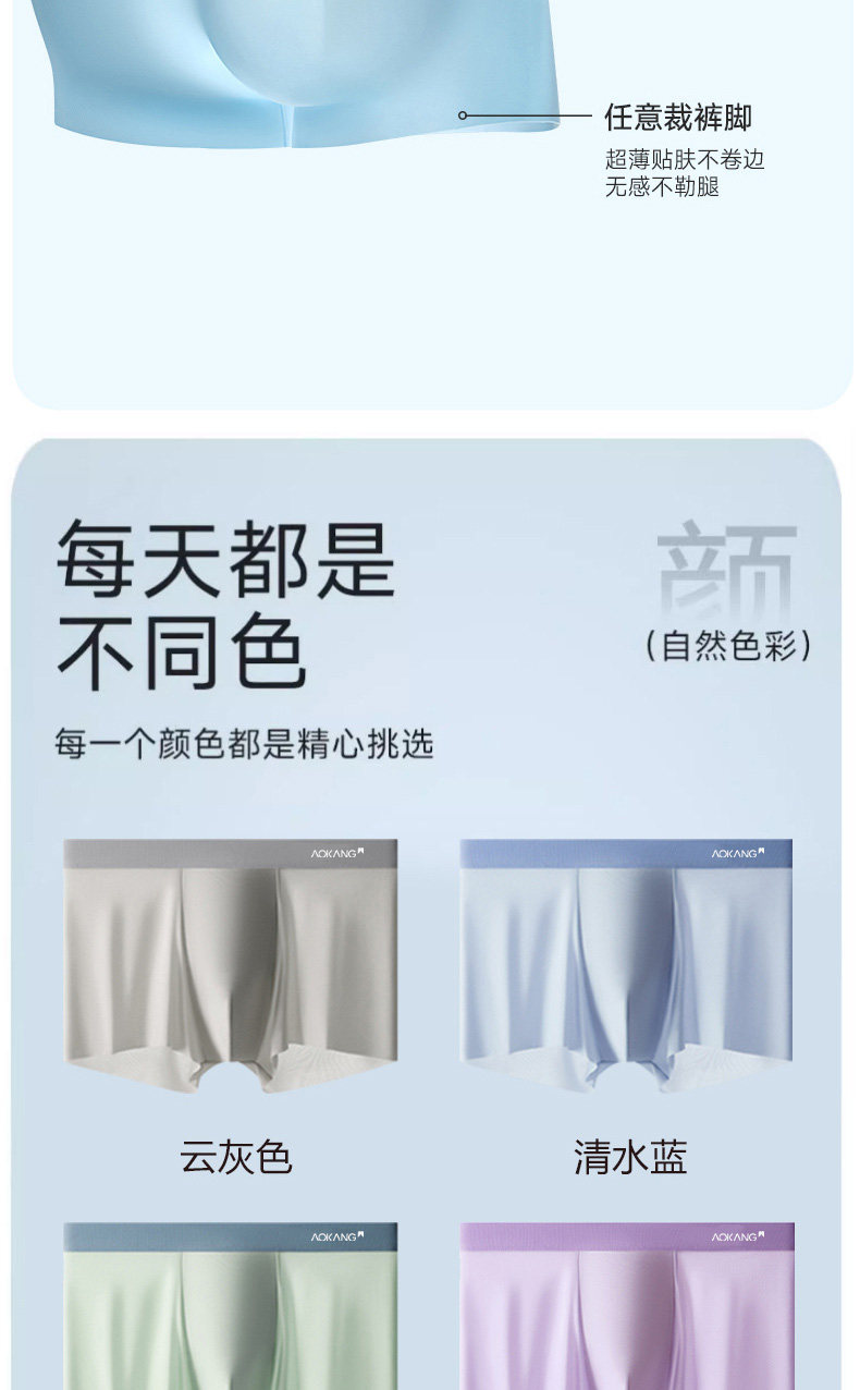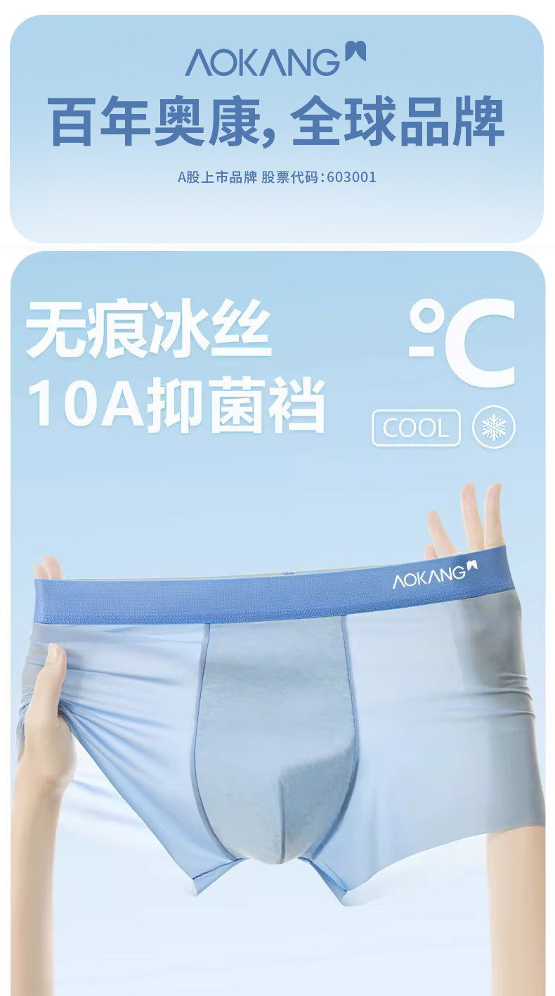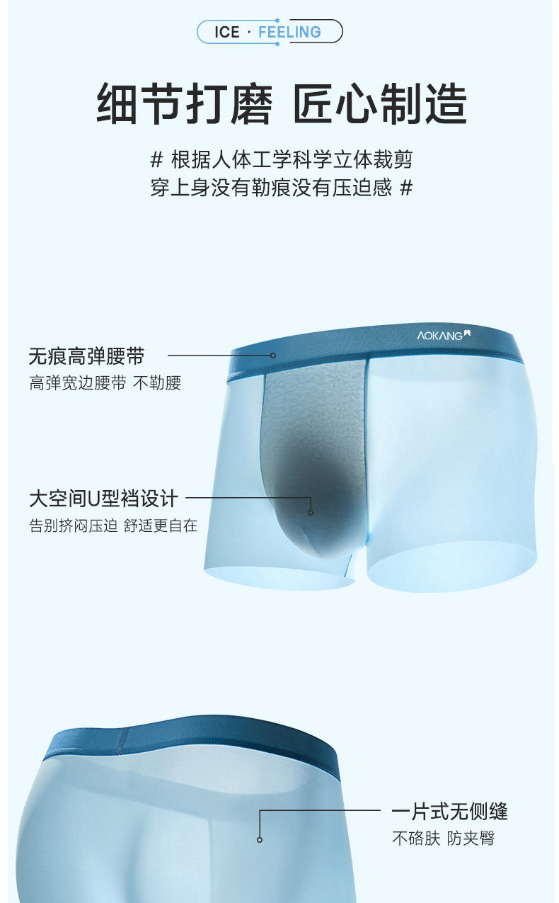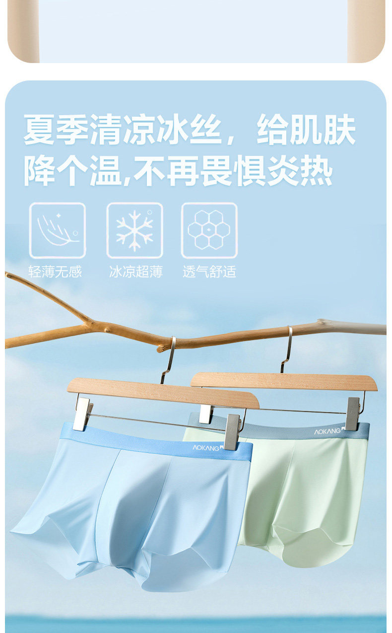 奥康、2026新款、冰丝无痕内裤、男士、夏季薄款、四角裤