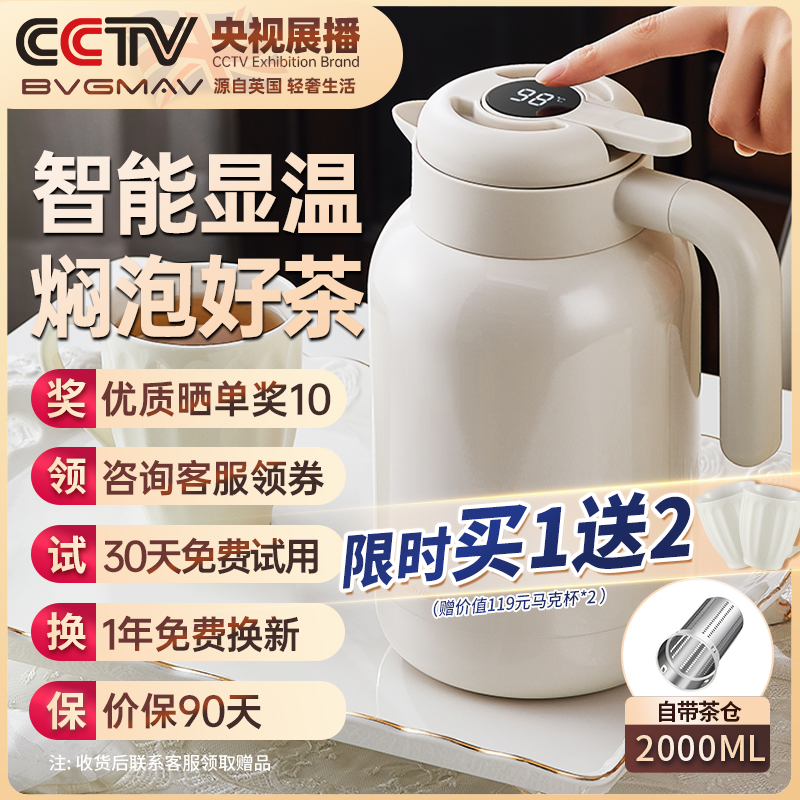 英国宝威玛温显居家焖茶壶大容量热水壶母婴级不锈钢内胆保温壶