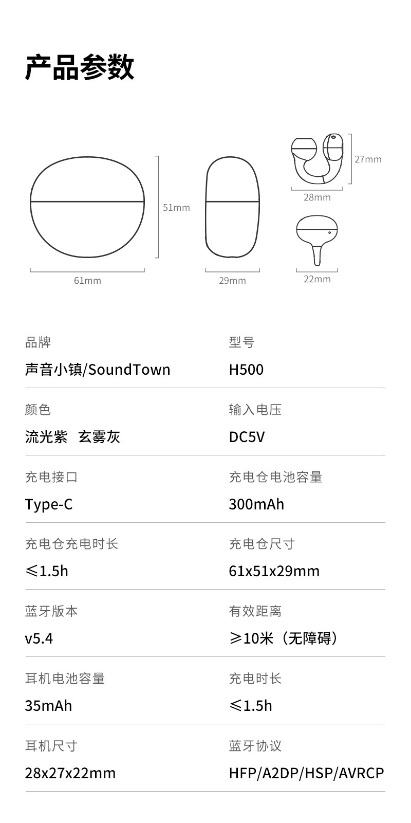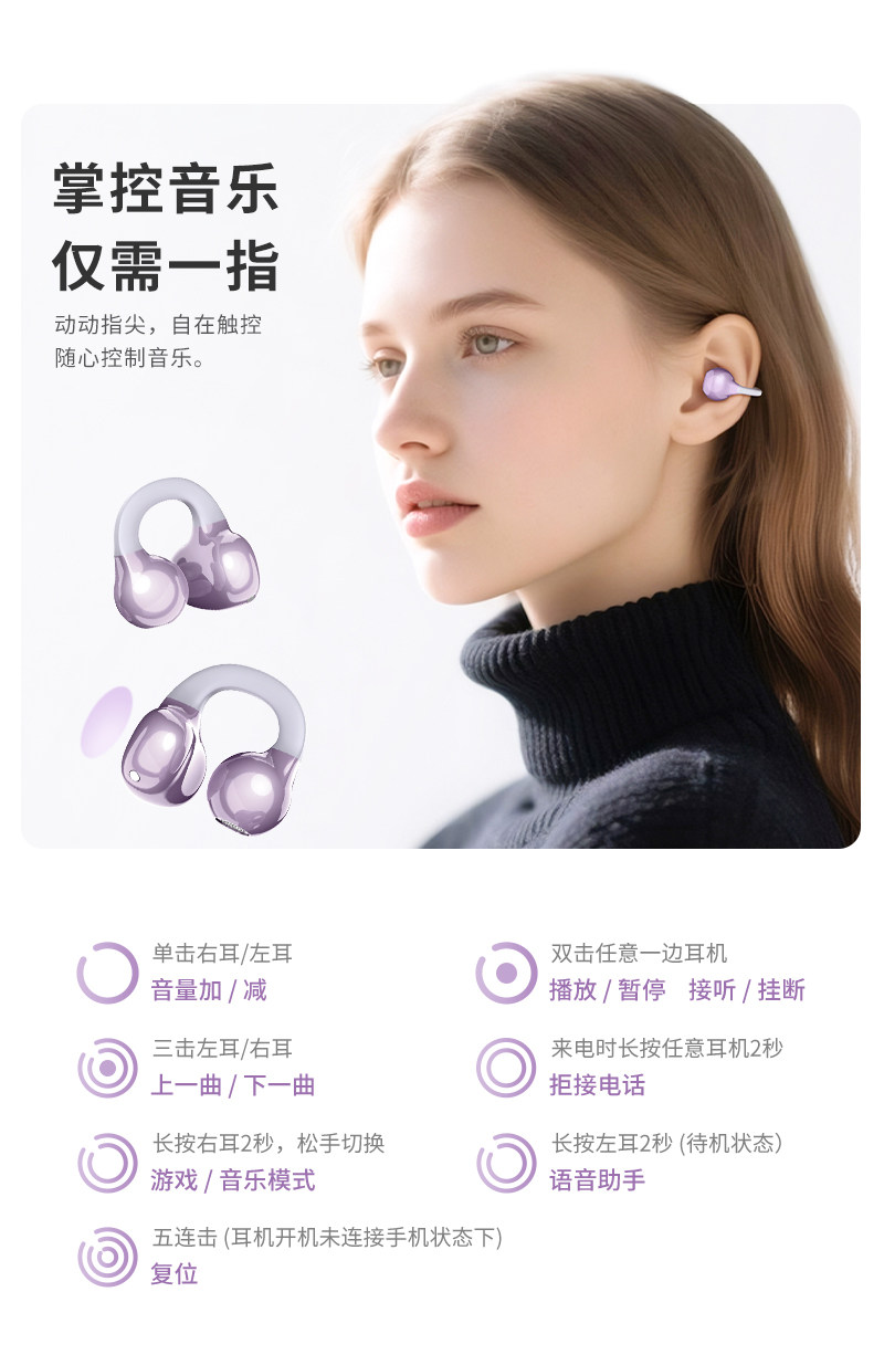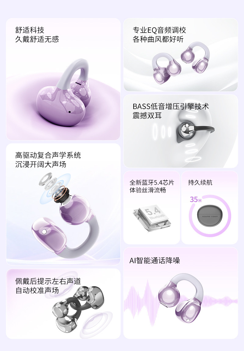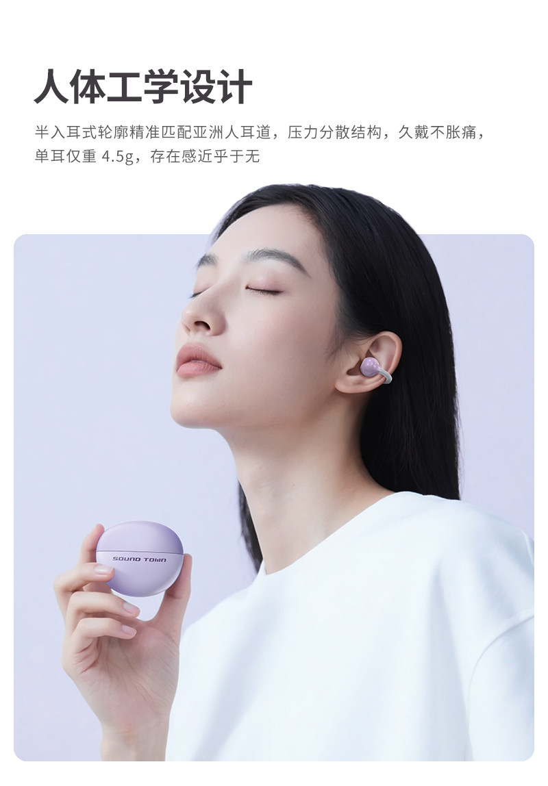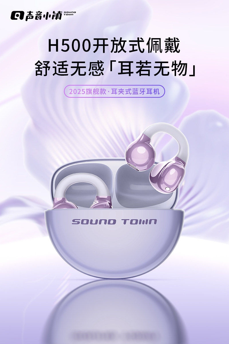 声音小镇 H500无线蓝牙耳机 耳夹式 气骨传导 开放式不入耳 2025新款