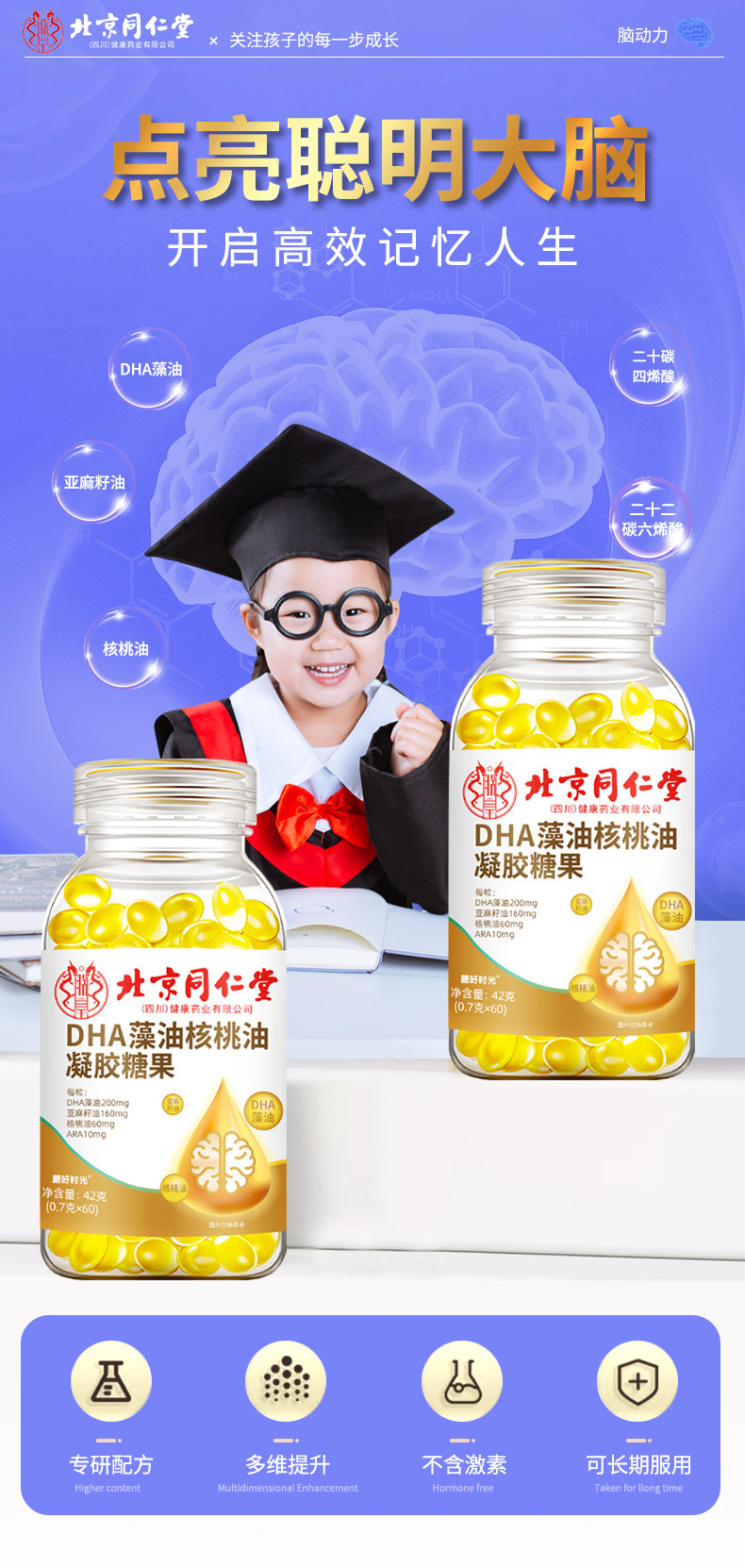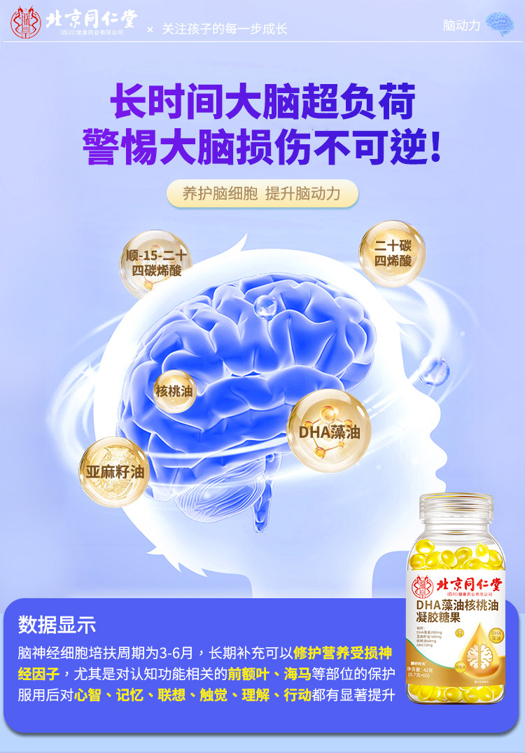 北京同仁堂dha核桃油神经酸藻油记忆专注儿童青少年磷脂酰丝氨酸