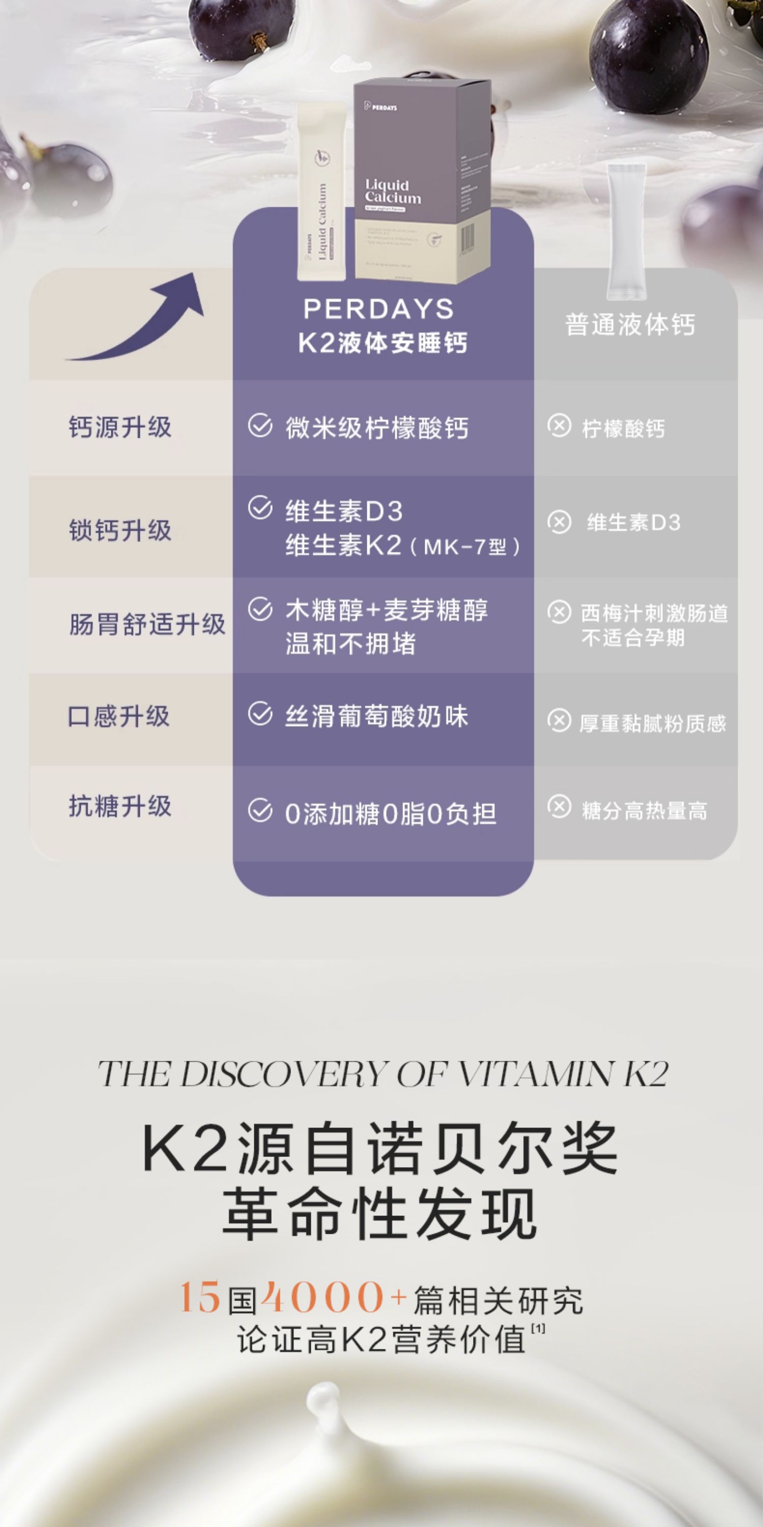 PERDAYS液体钙K2维生素酸奶味孕妇孕孕期专用20条装