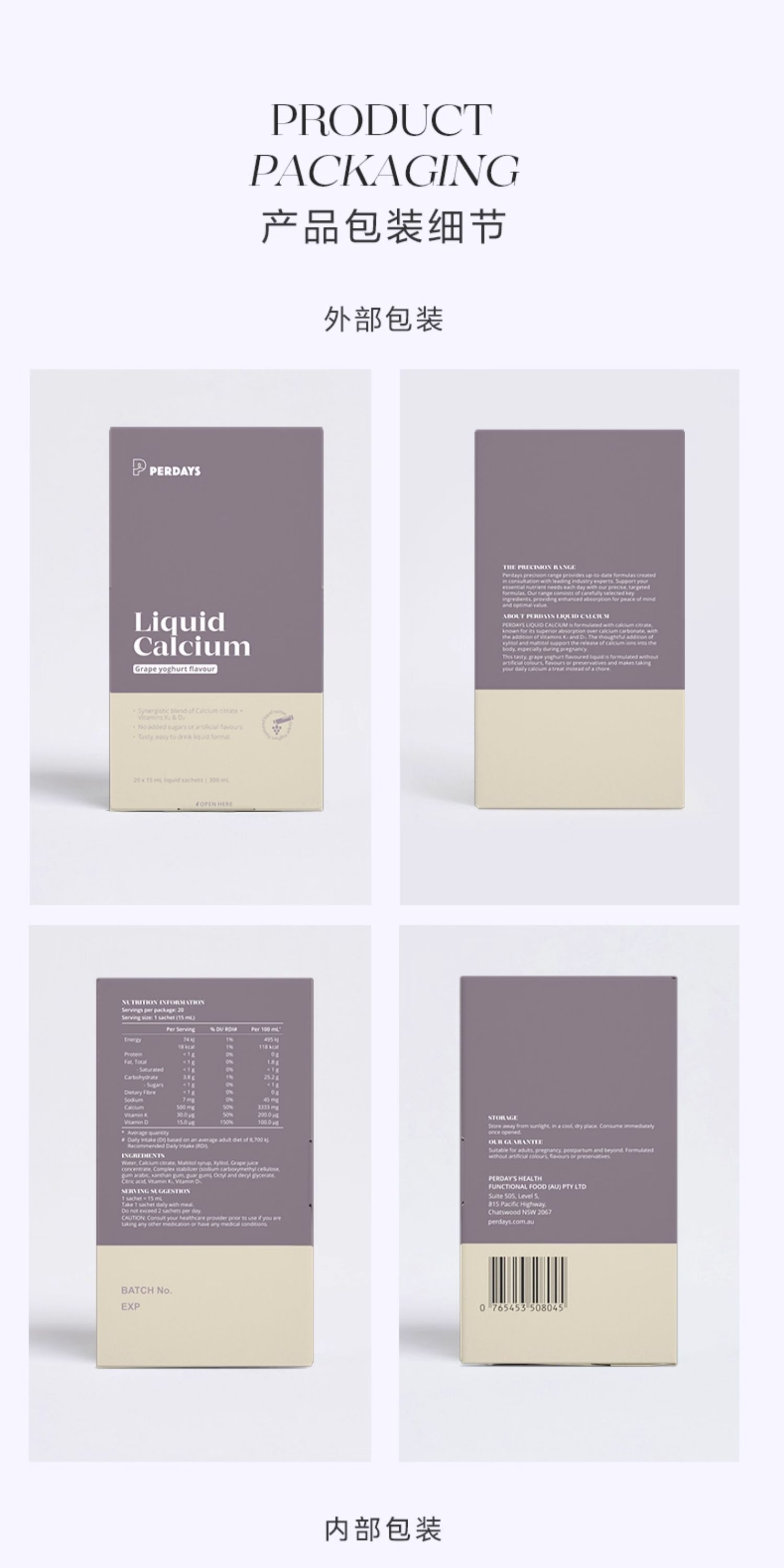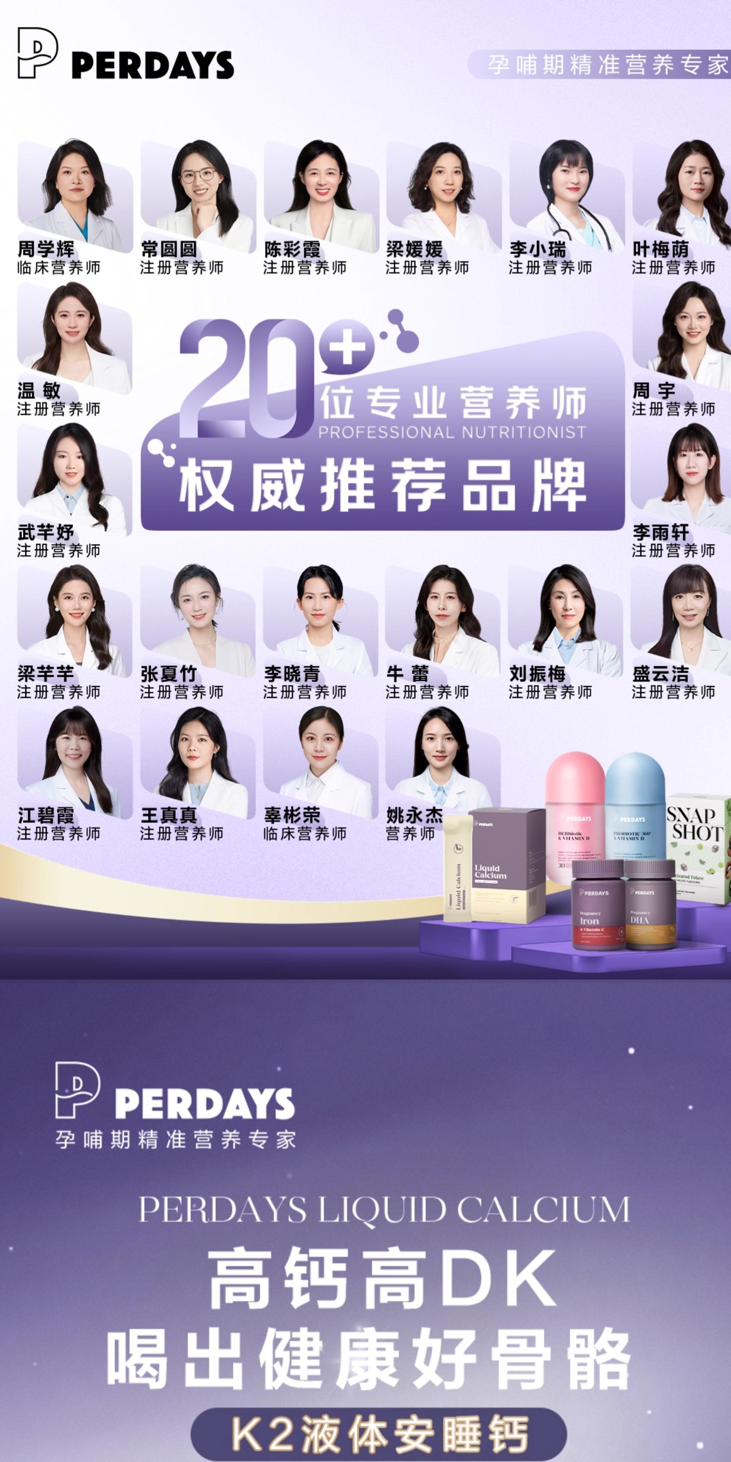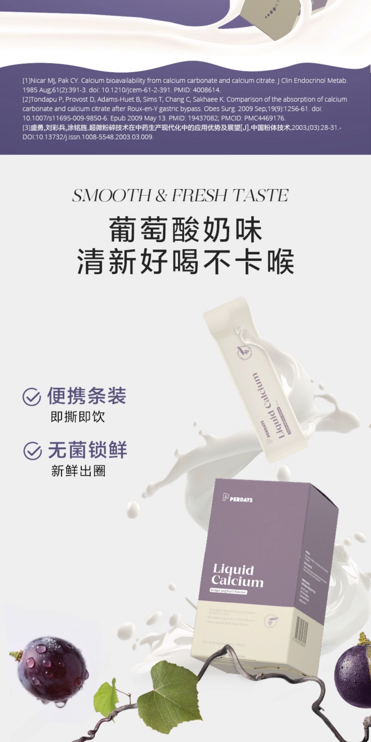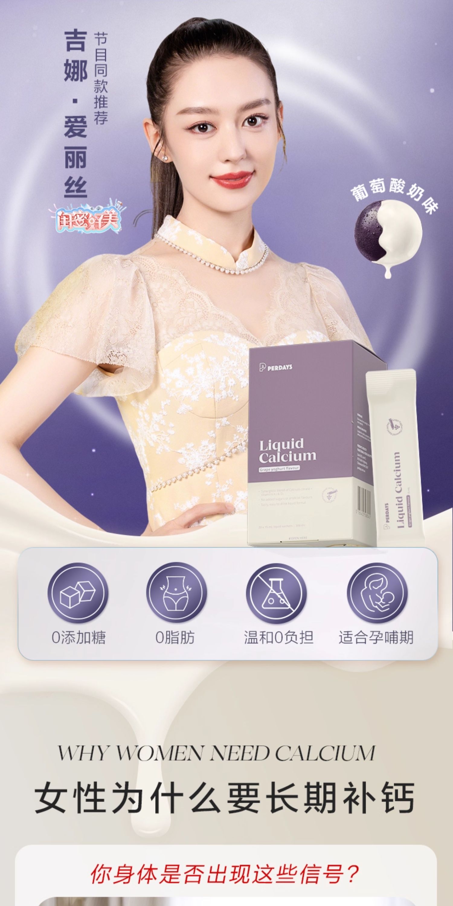PERDAYS、液体钙、K2维生素、酸奶味、孕妇专用、孕期、20条装