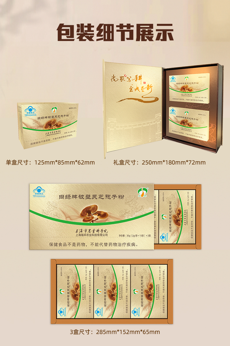 上海农科院、尚绿金盒、破壁灵芝孢子粉、增强免疫力、蓝帽