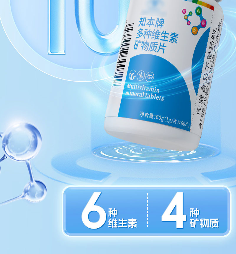 知本、多种矿物质片、中老年成人、维生素、钙镁锌硒、复合维生素BC