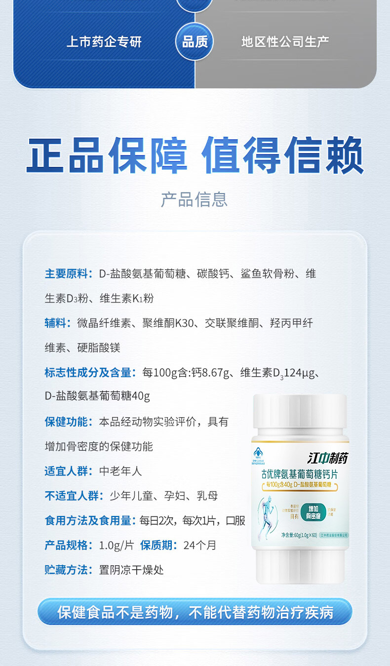 江中、氨糖软骨素加钙片、中老年人、改善骨密度、关节、官方旗舰店、正品