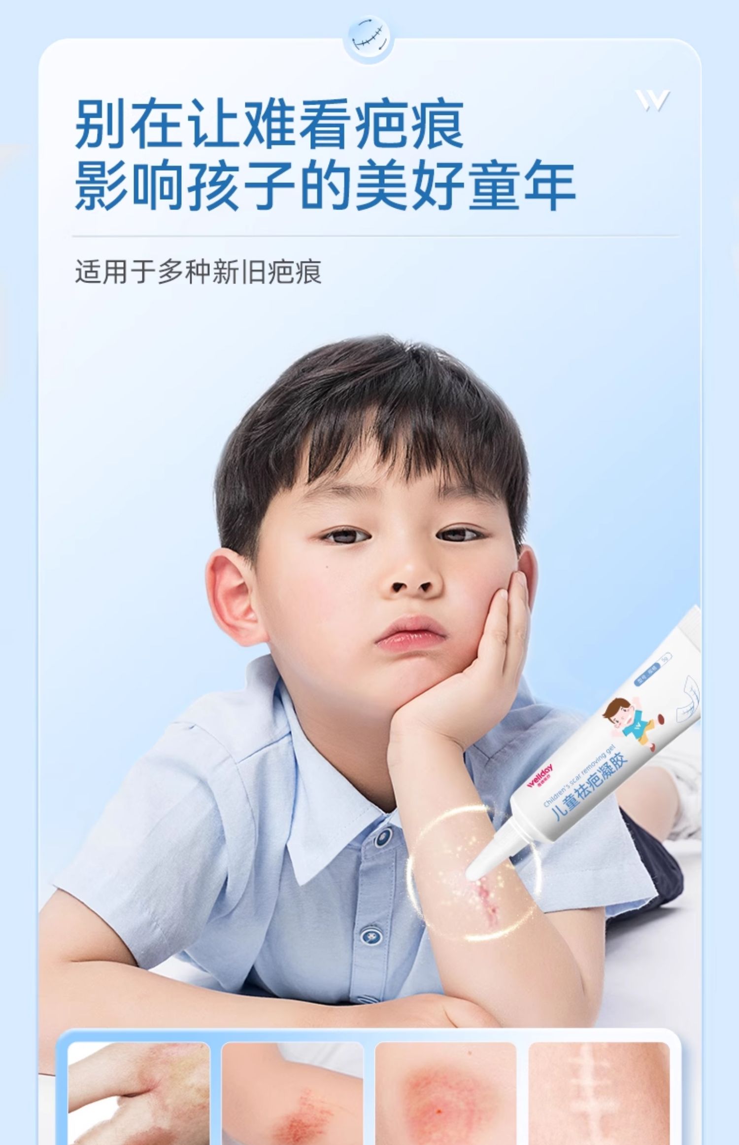 维德医疗、祛疤膏、儿童疤痕、平疤克、儿童专用、脸部修复、伤贴