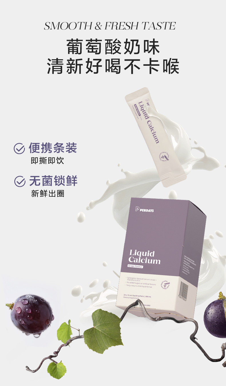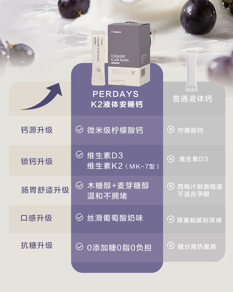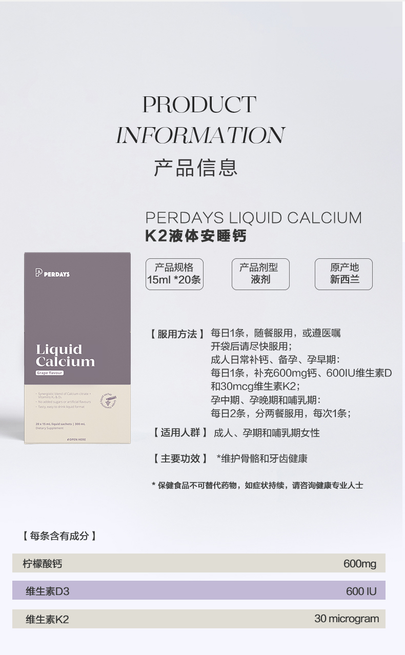 升级版、PERDAYS、液体钙、柠檬酸钙、孕妇、维生素K2、酸奶葡萄味
