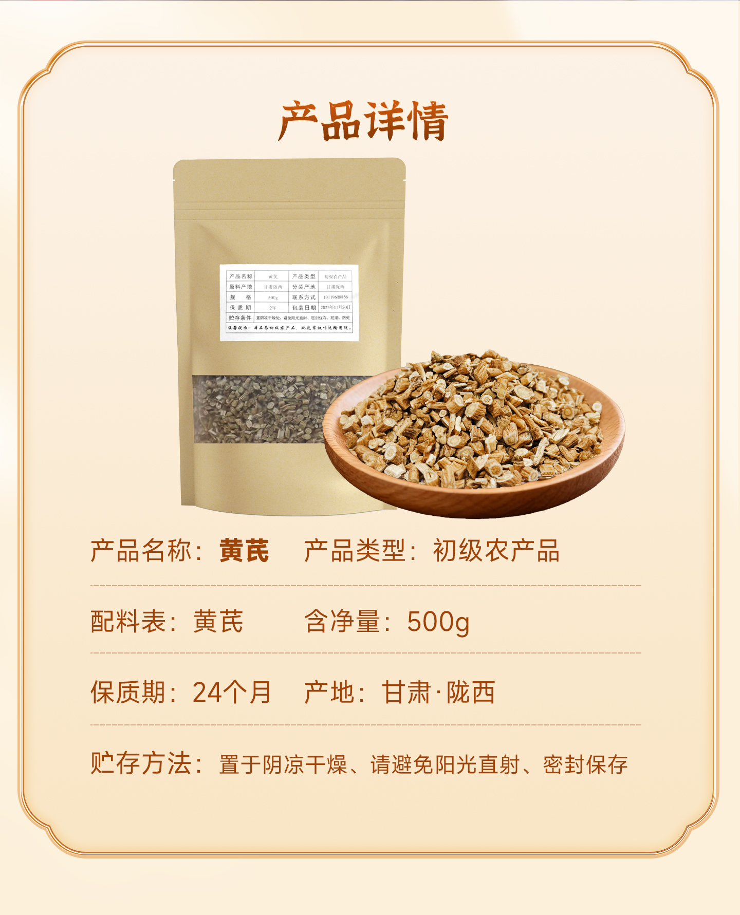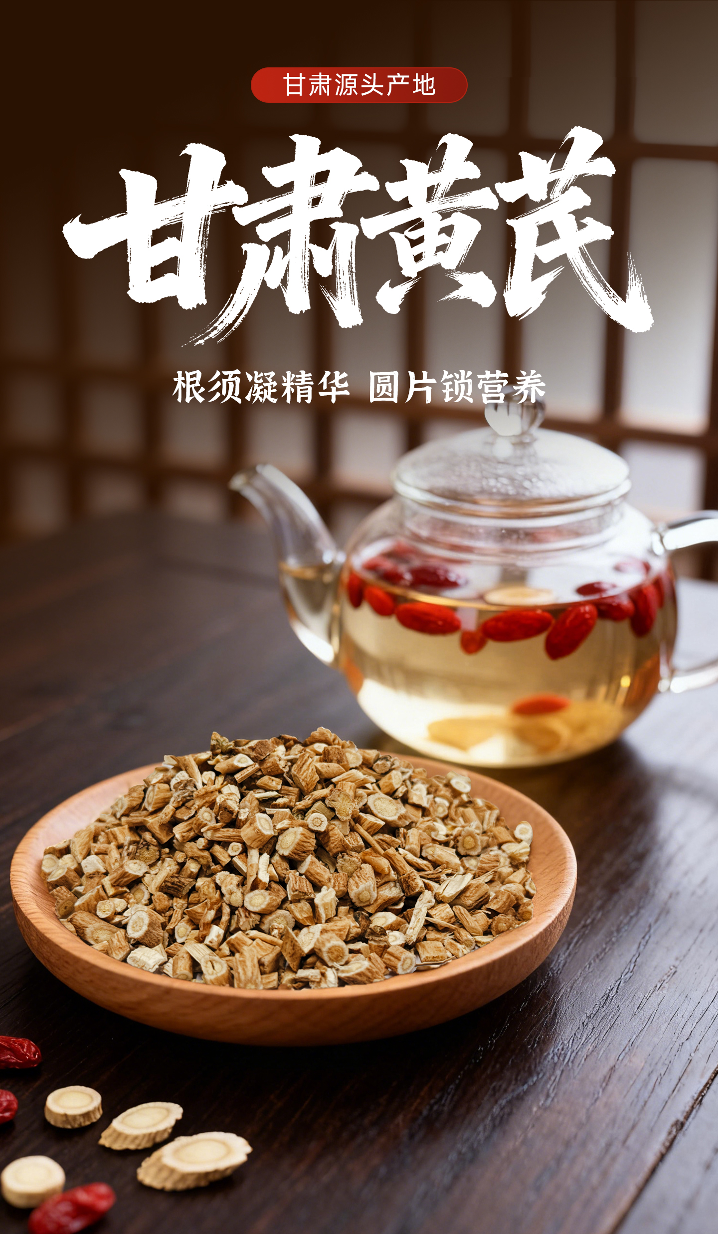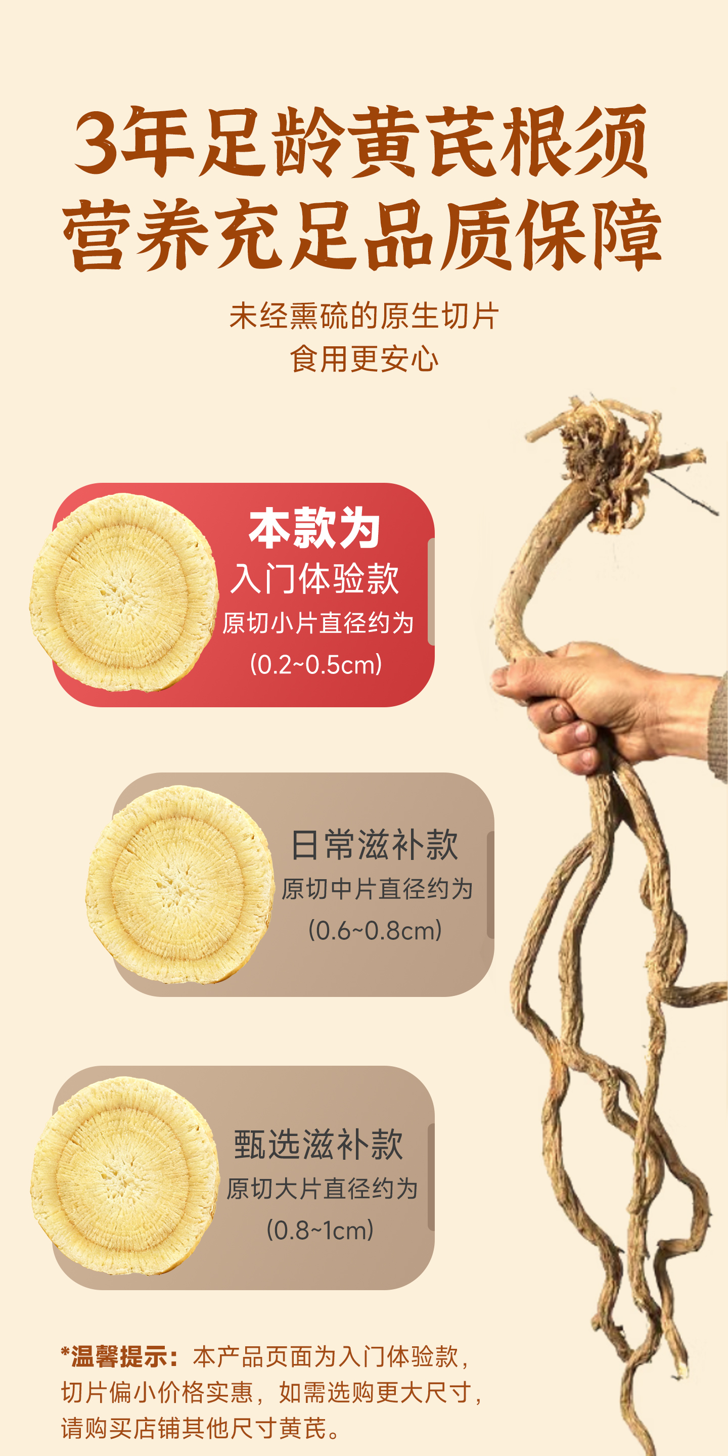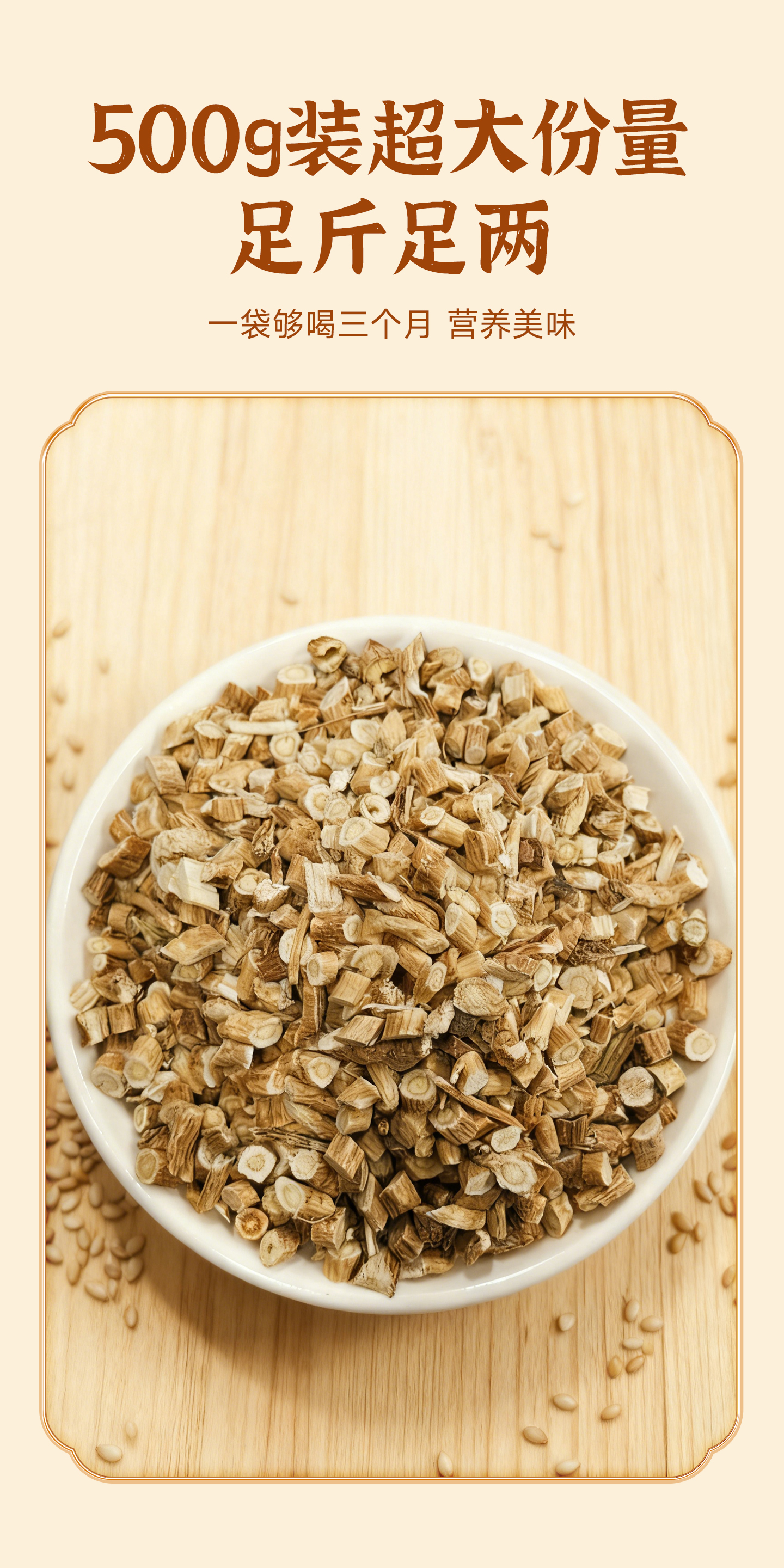 甘肃陇西、原产、无硫、野生黄芪、根须圆切片、500g、经济袋装