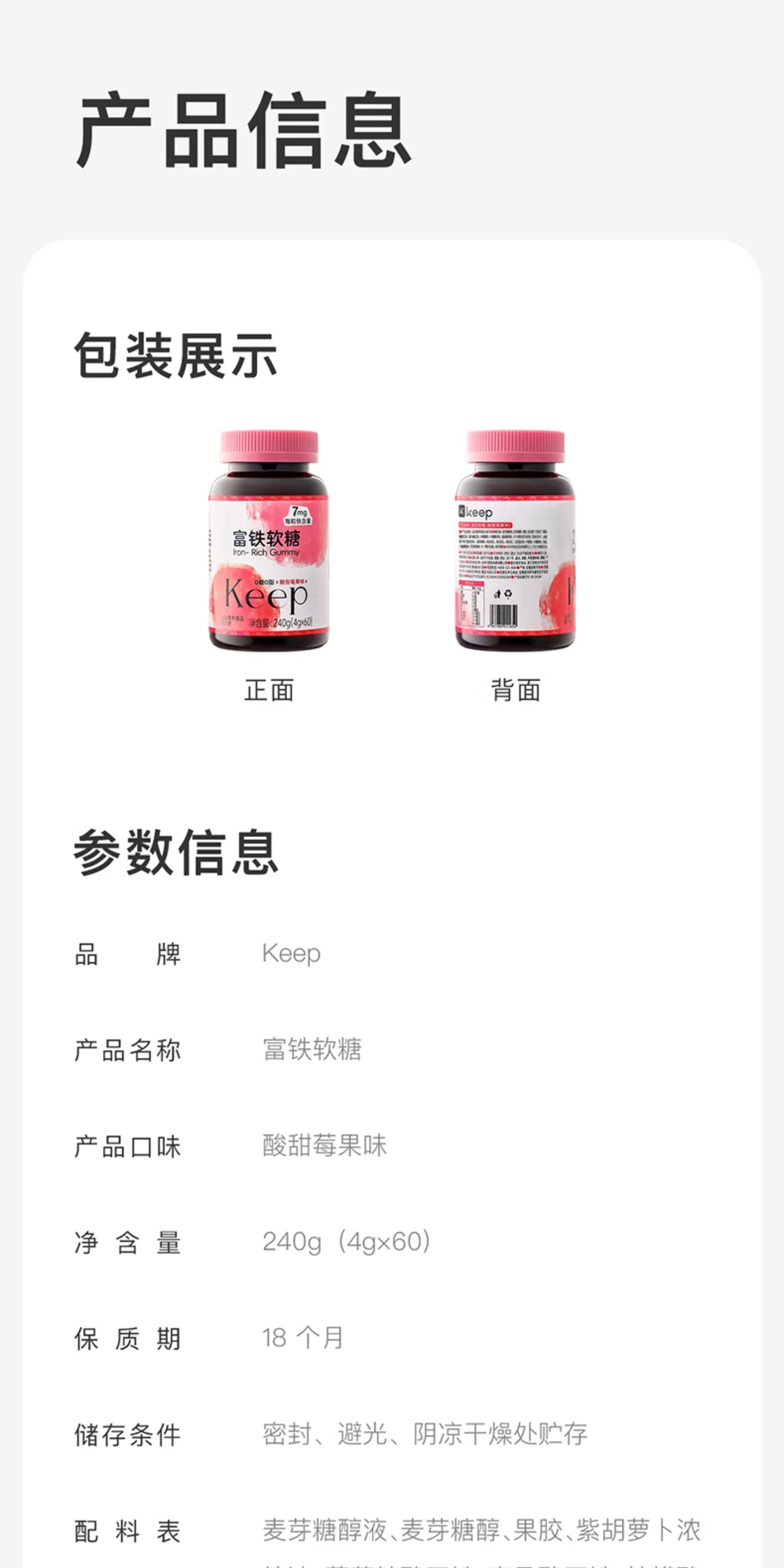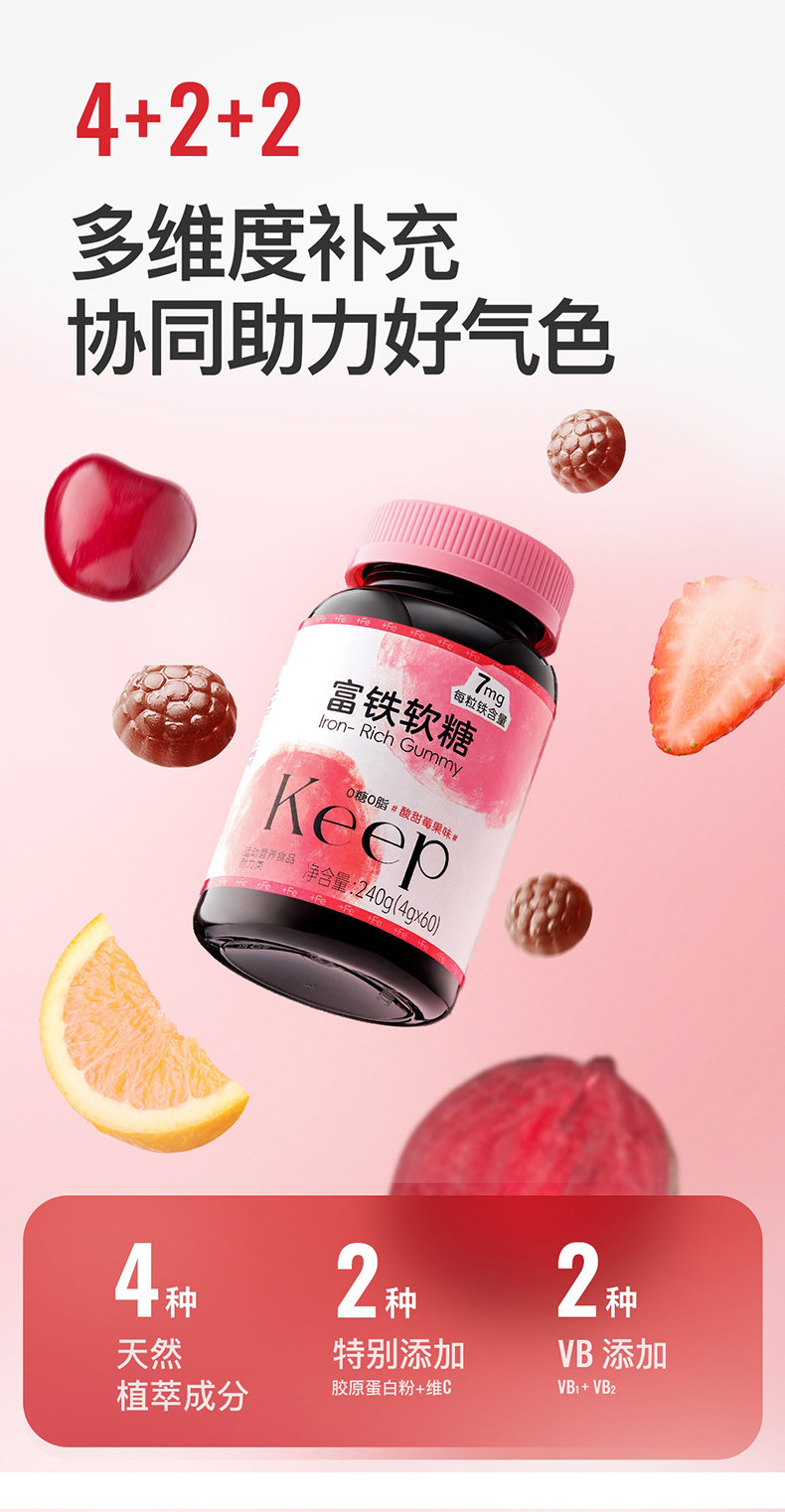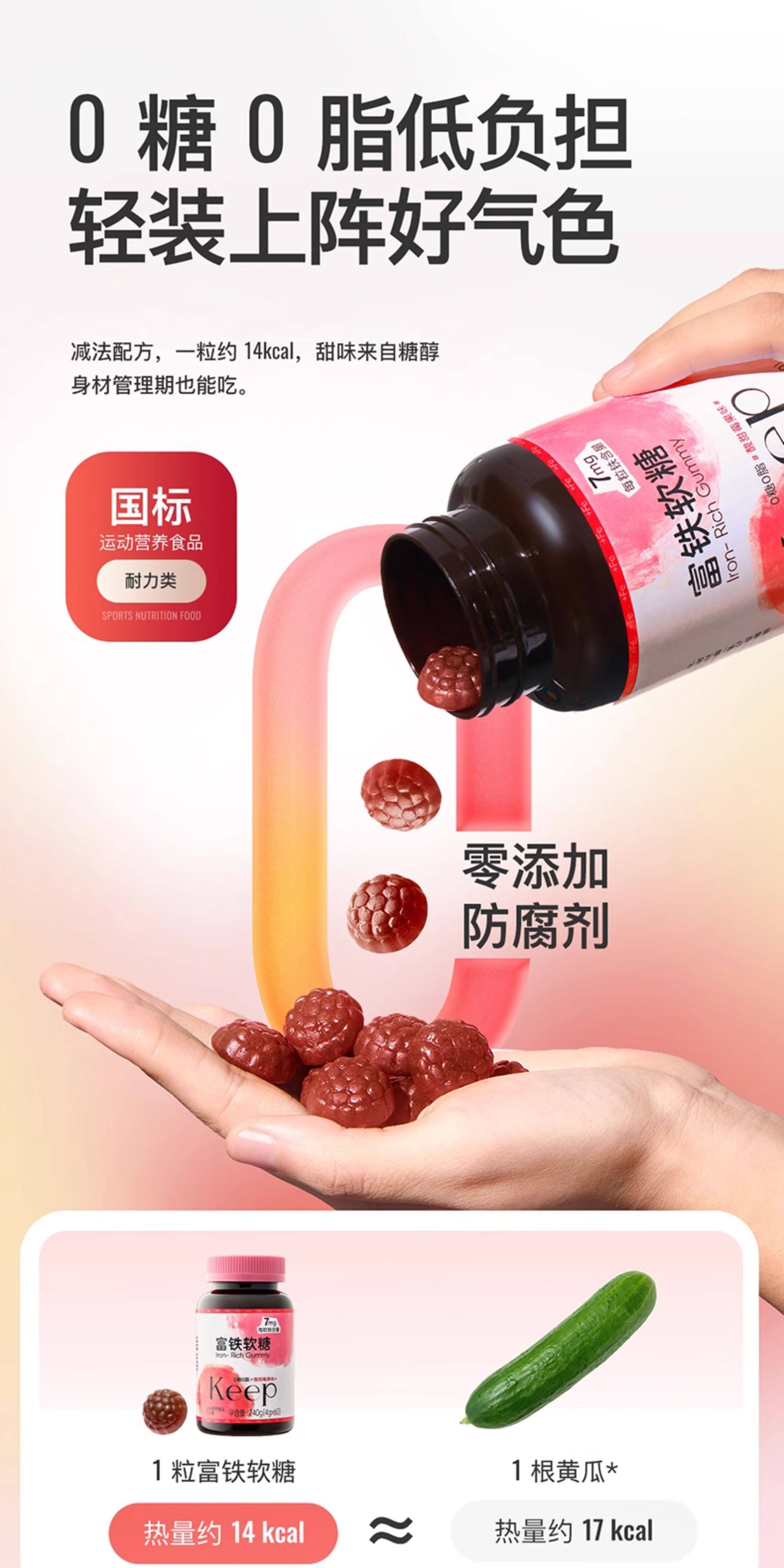 Keep富铁软糖、有机铁、铁元素、气血、孕妇、经期女性、运动