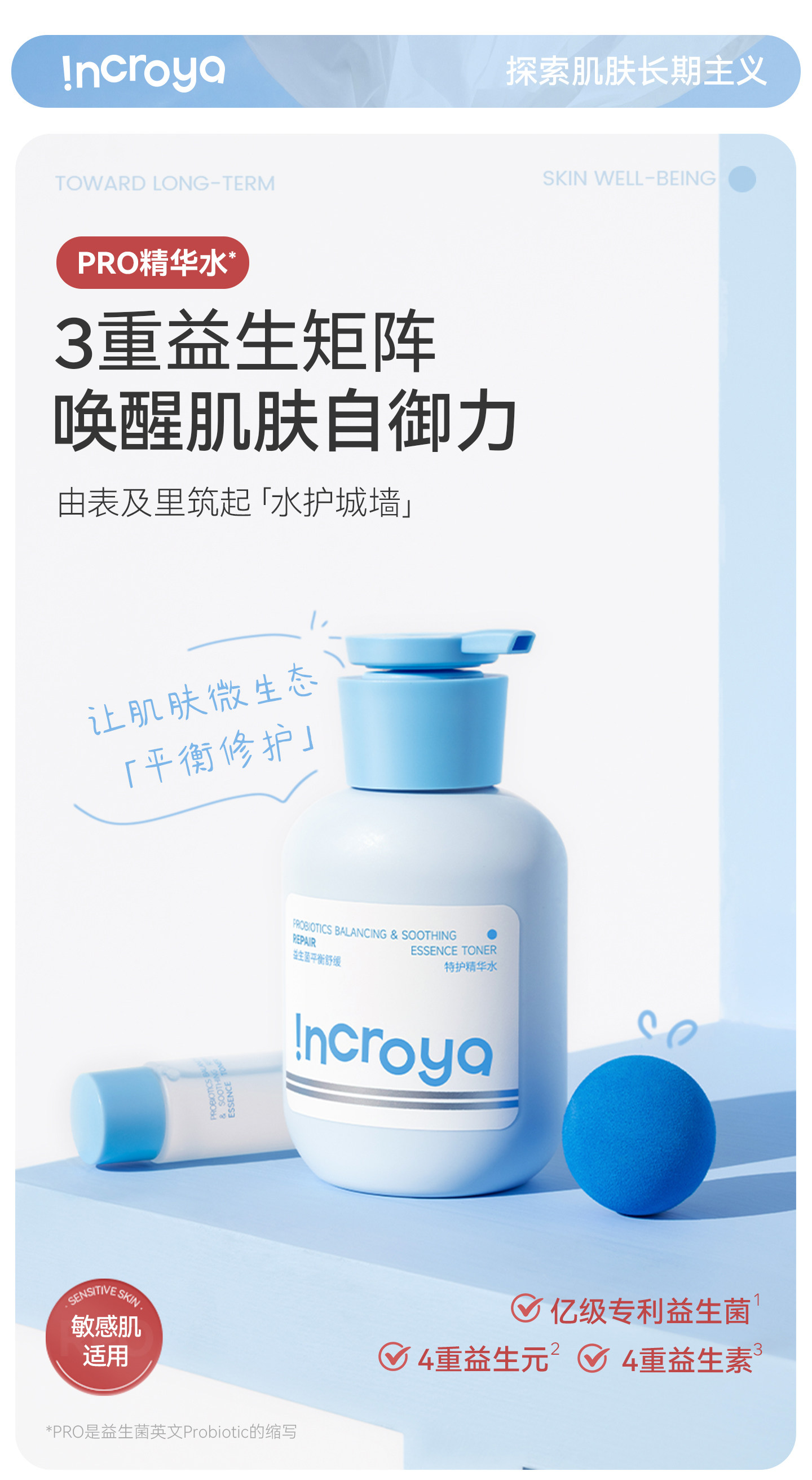 INCROYA、益生菌Pro精华水、补水爽肤、保湿护肤、湿敷舒缓、敏感肌适用