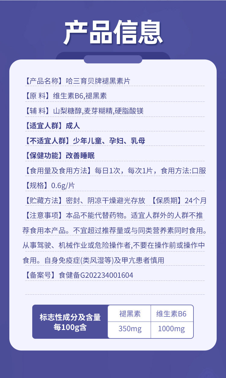 念福堂 褪黑素 维生素B6片 改善睡眠 学生 成人