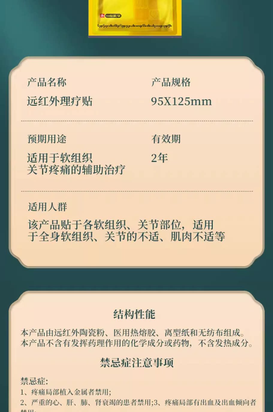 今古舒远红外理疗贴颈椎酸痛肩周膝盖关节膏贴腰肌劳损发热药贴