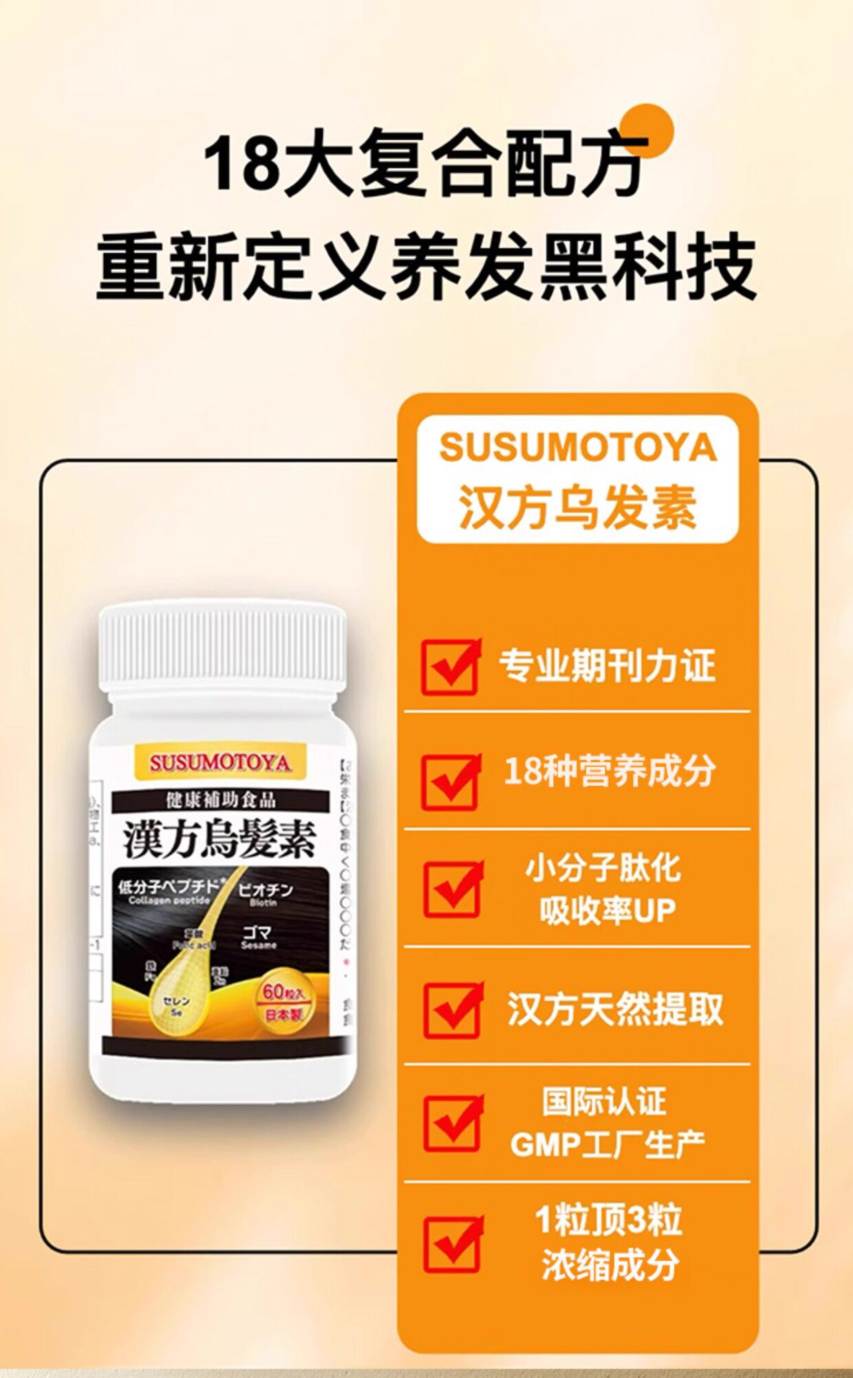 【26年5月到期】汉方乌发素复合生物素维生素b胶原蛋白叶酸黑芝麻