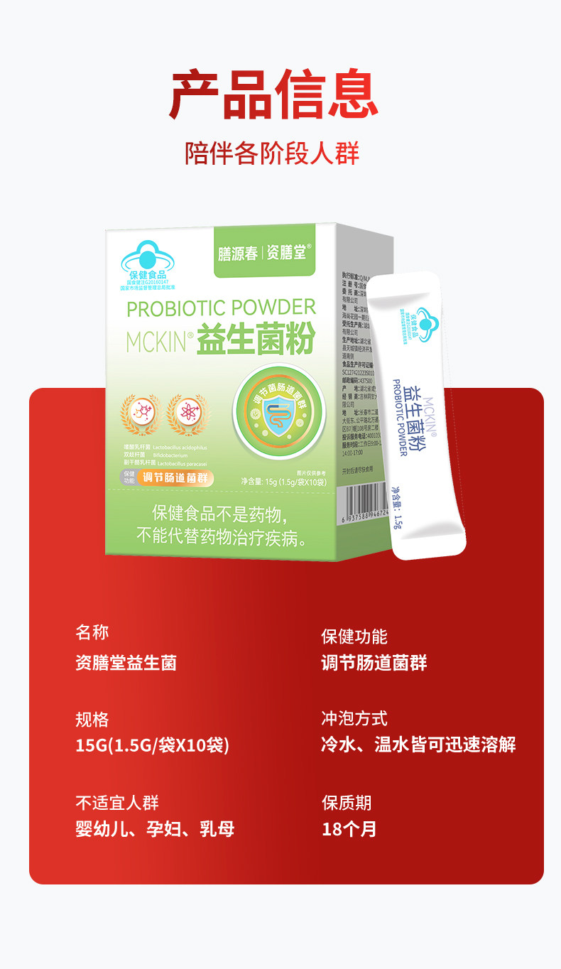 膳源春益生菌粉肠道菌群调节蓝帽认证官方正品