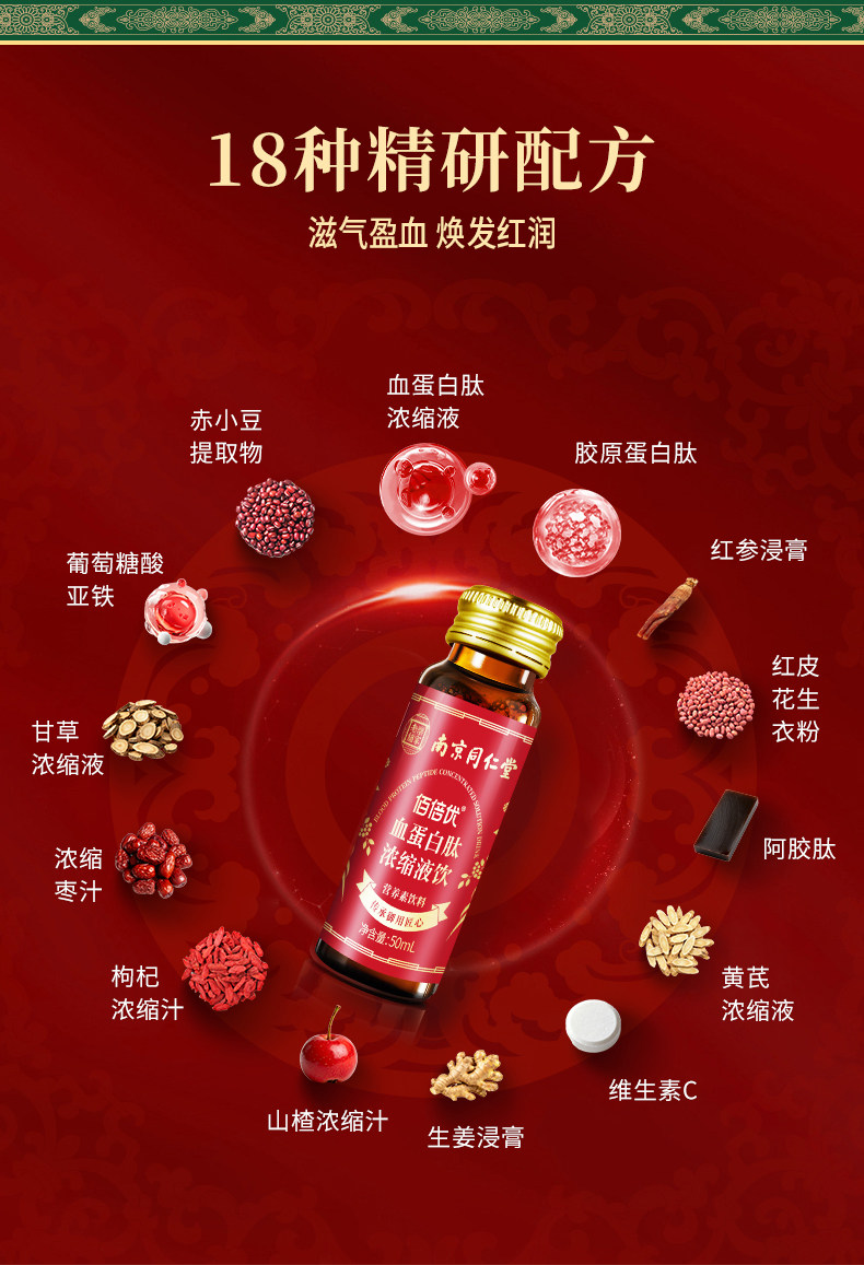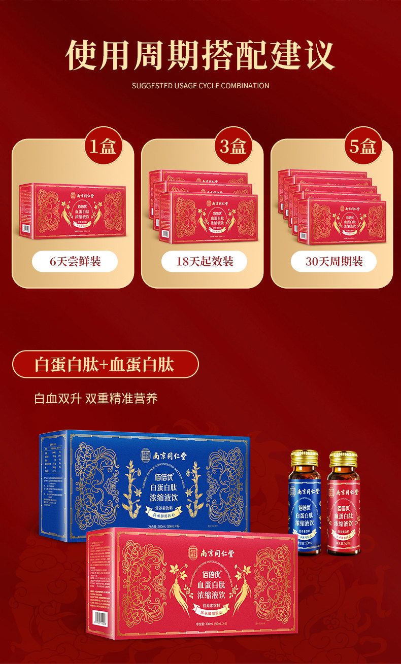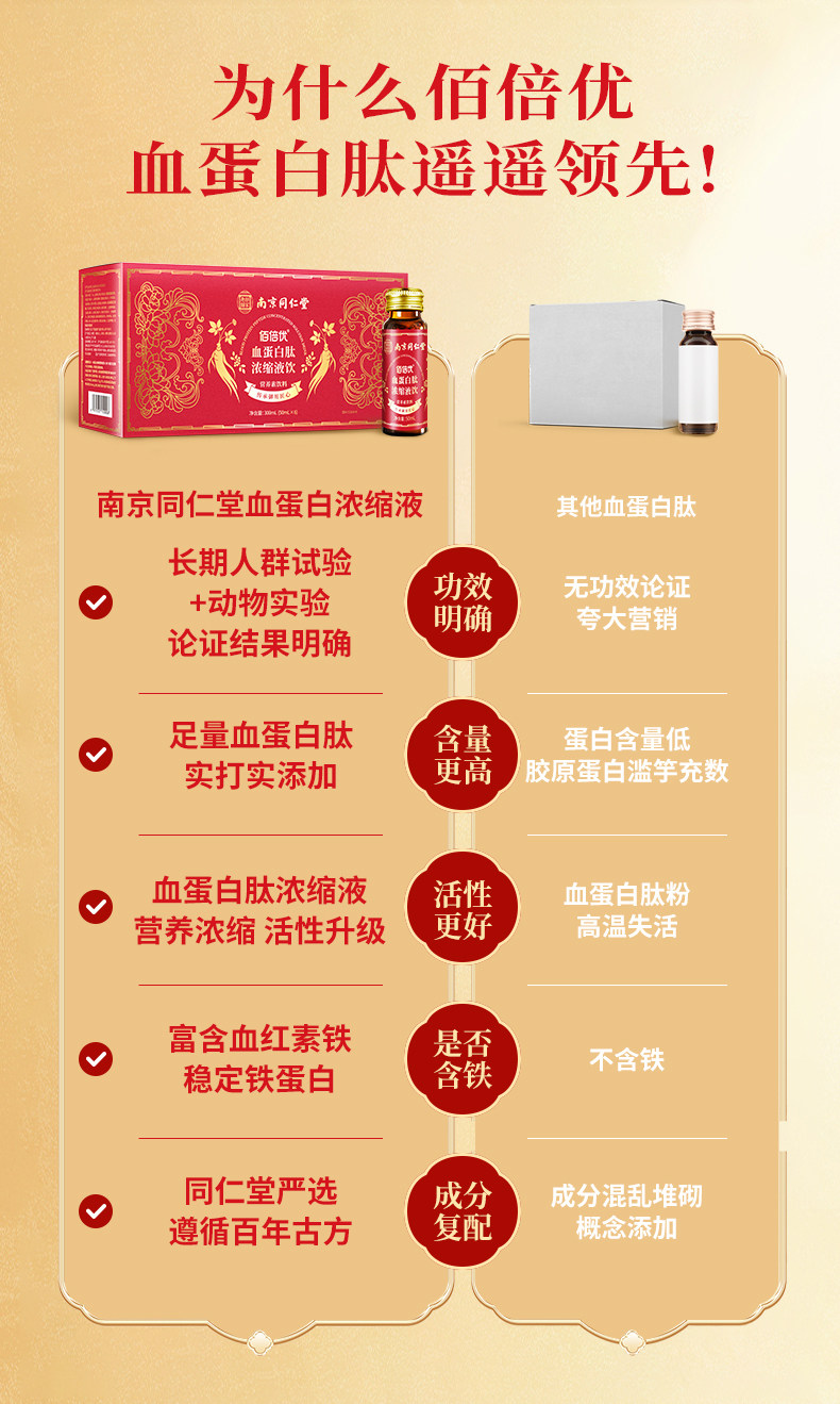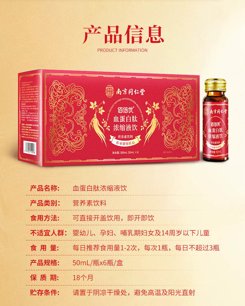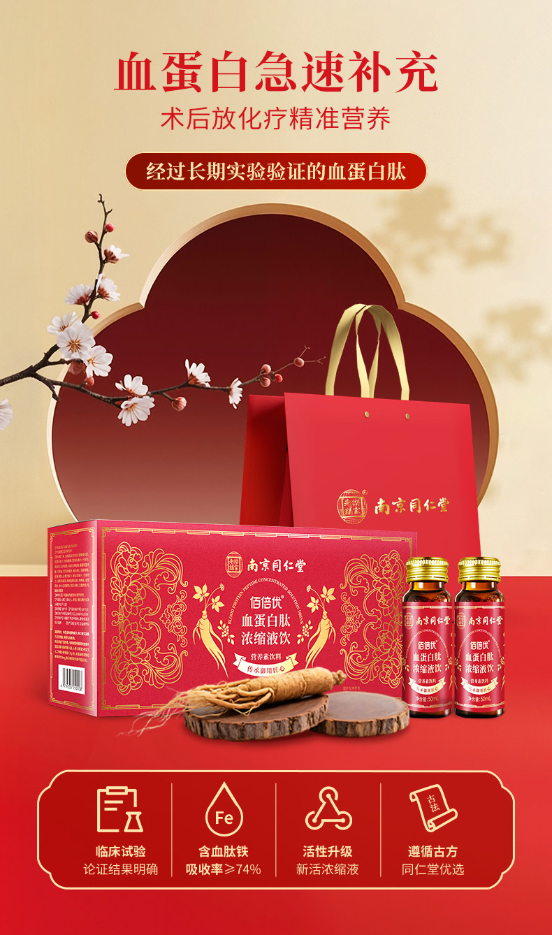 佰倍优同仁堂血蛋白浓缩液术后营养支持口服液中老年日常滋补品