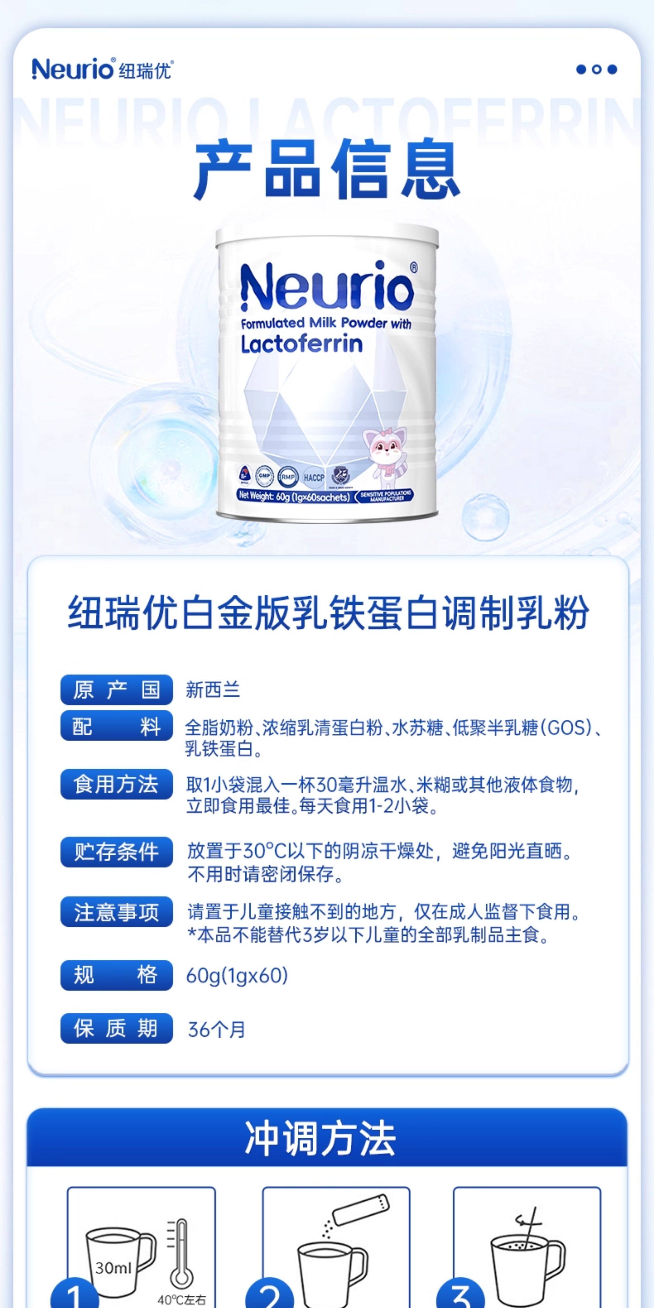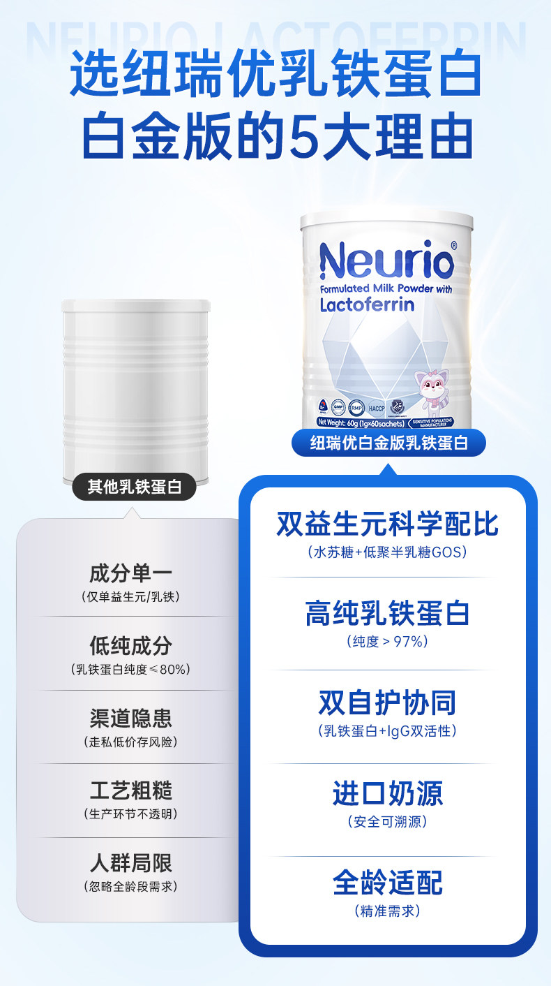 官方正品、儿童乳铁蛋白、纽瑞优白金版、免疫球蛋白、双益生元、营养