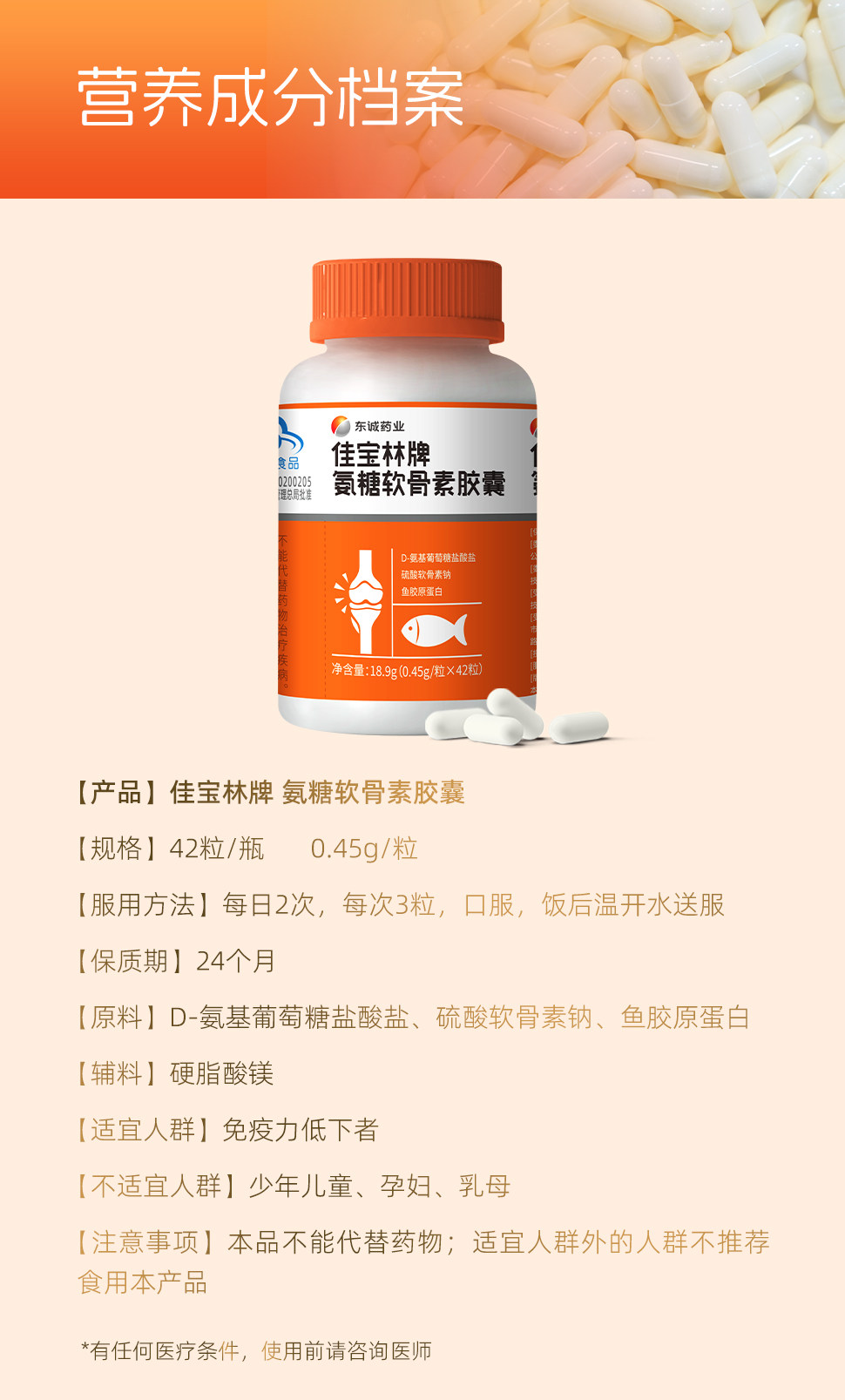 东诚药业氨糖软骨素胶囊42粒中老年男女强免疫护关节官方旗舰店