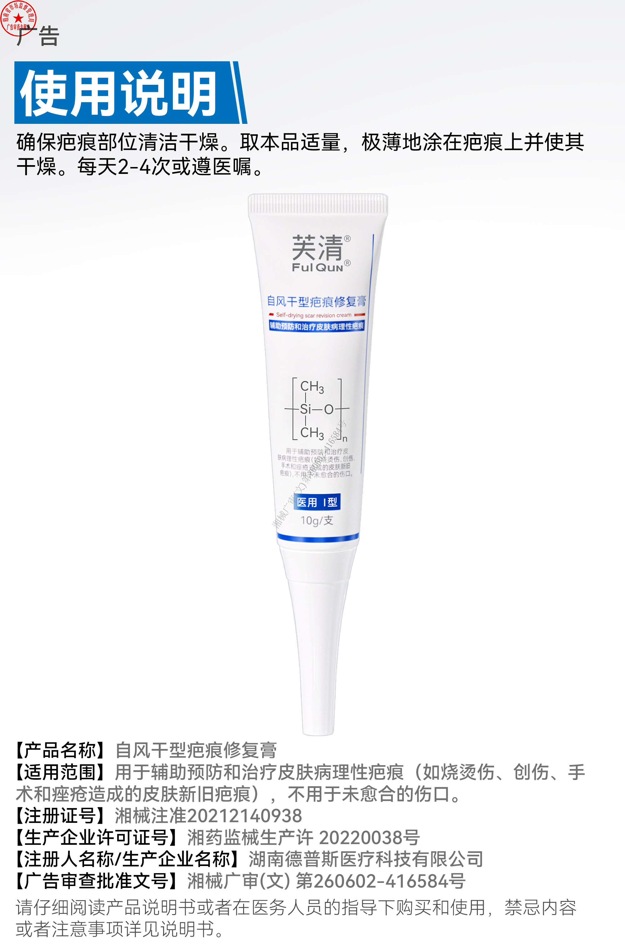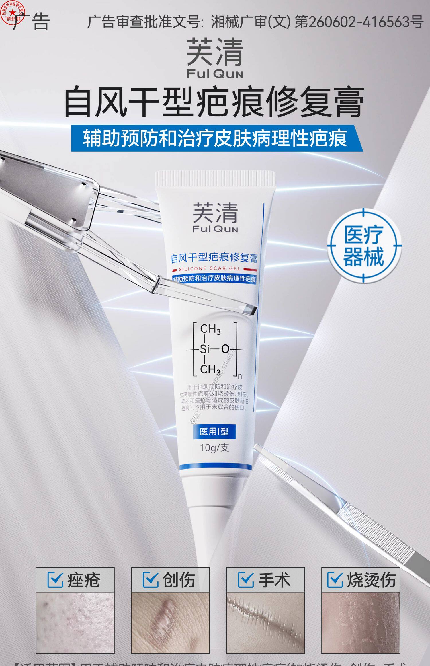 芙清祛疤膏、疤痕修复、剖腹产、双眼皮手术、点痣、医用硅酮凝胶