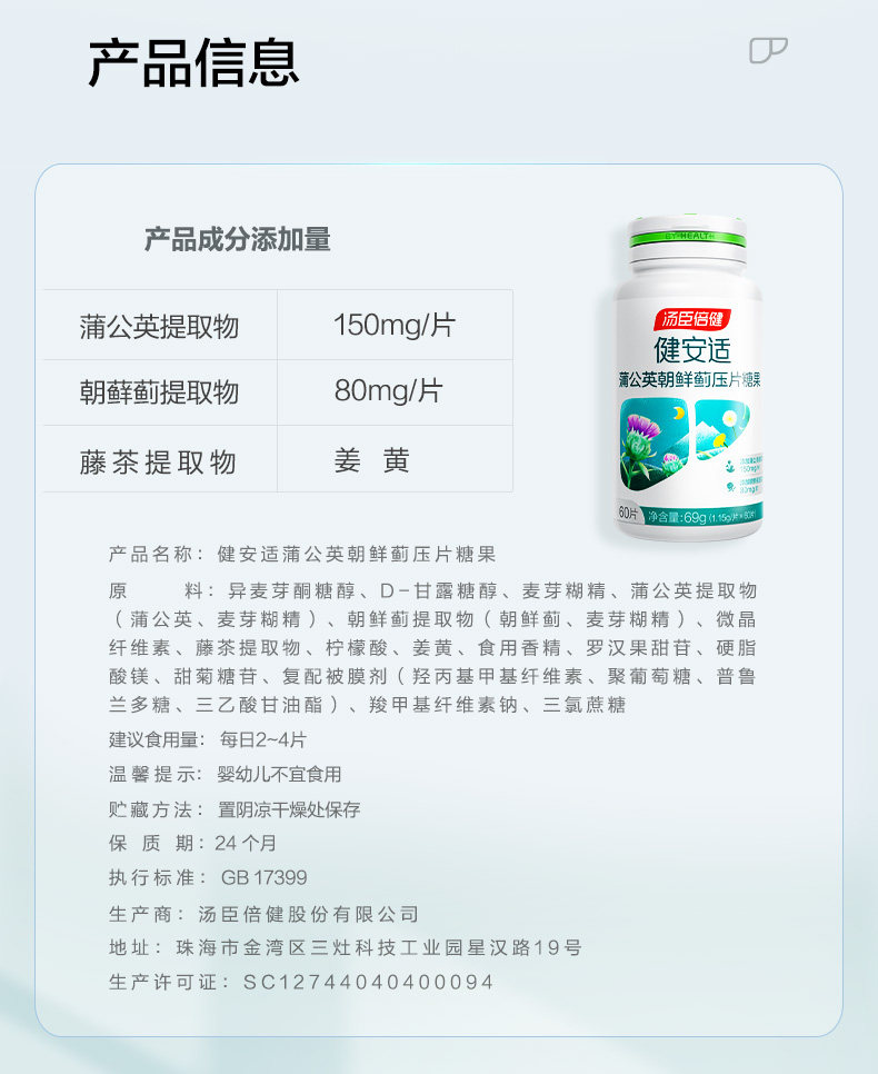 汤臣倍健健安适朝鲜蓟葛根丹参片植萃营养呵护「小心肝」
