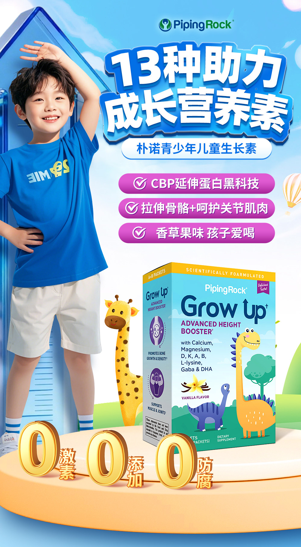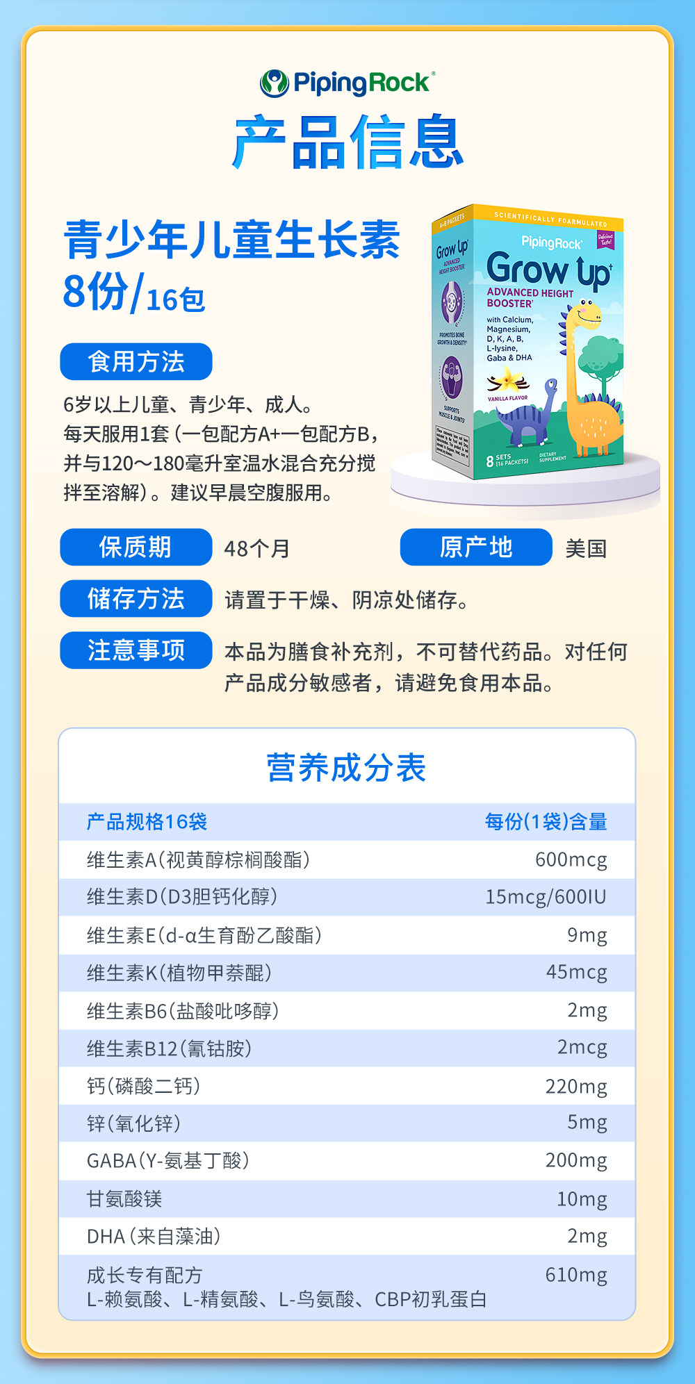 赖氨酸氨基丁酸成长甘氨酸镁旗舰店青少年生长素钙片儿童镁铁锌