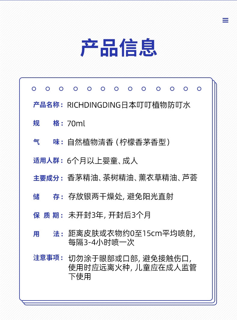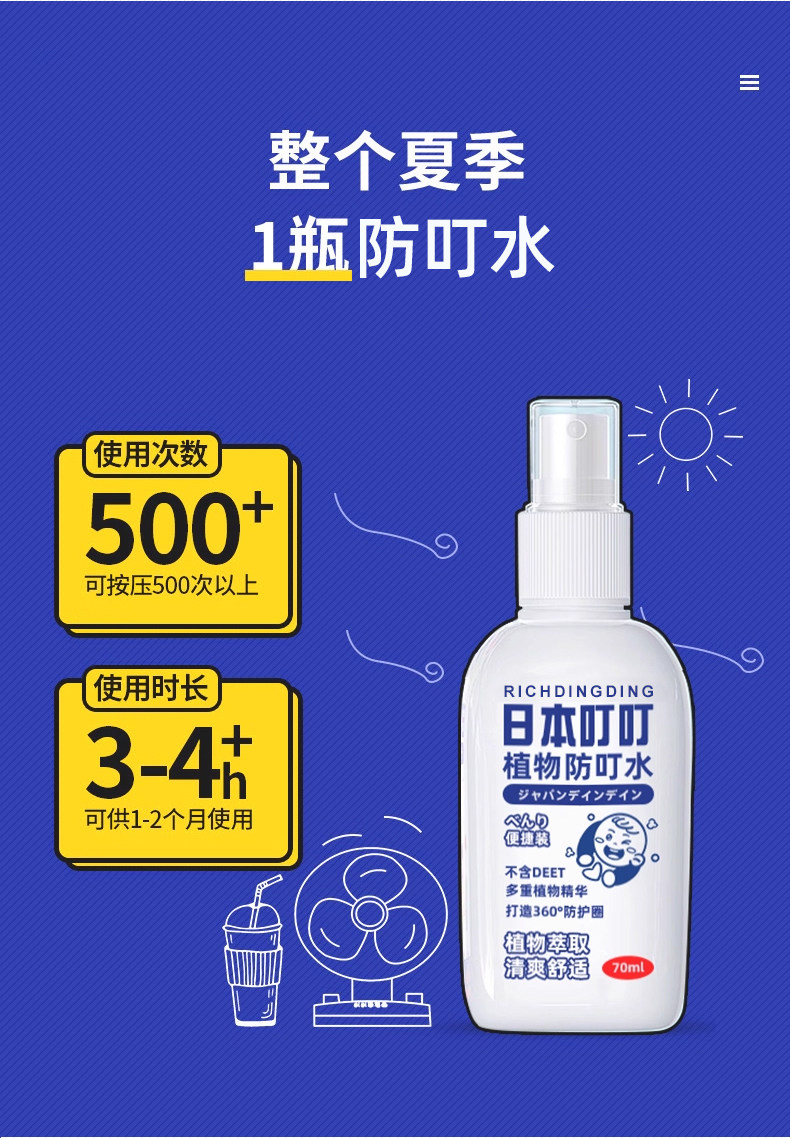 日本叮叮、驱蚊水、喷雾剂、花露水、防蚊液、户外灭蚊、儿童