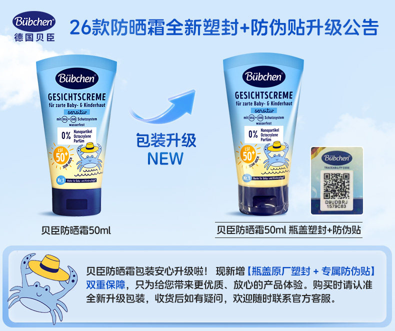 德国Bubchen贝臣儿童防晒面霜乳海边女童隔离紫外线婴儿宝宝物理