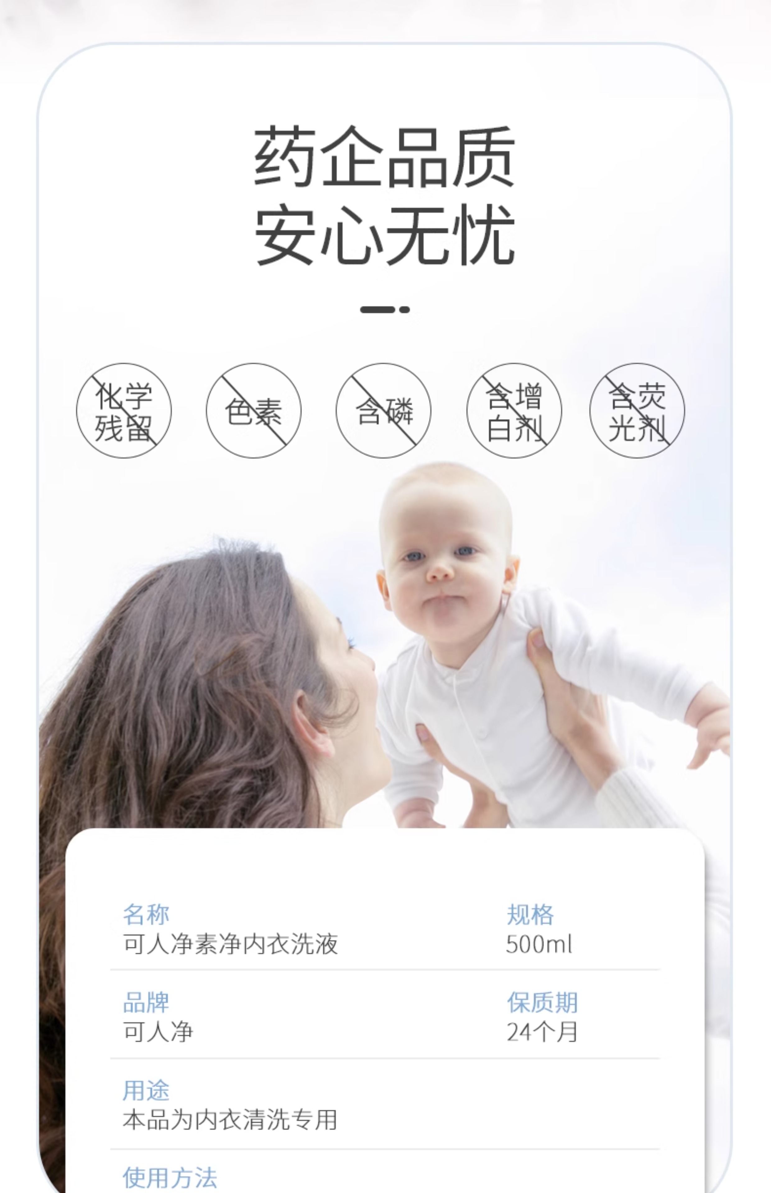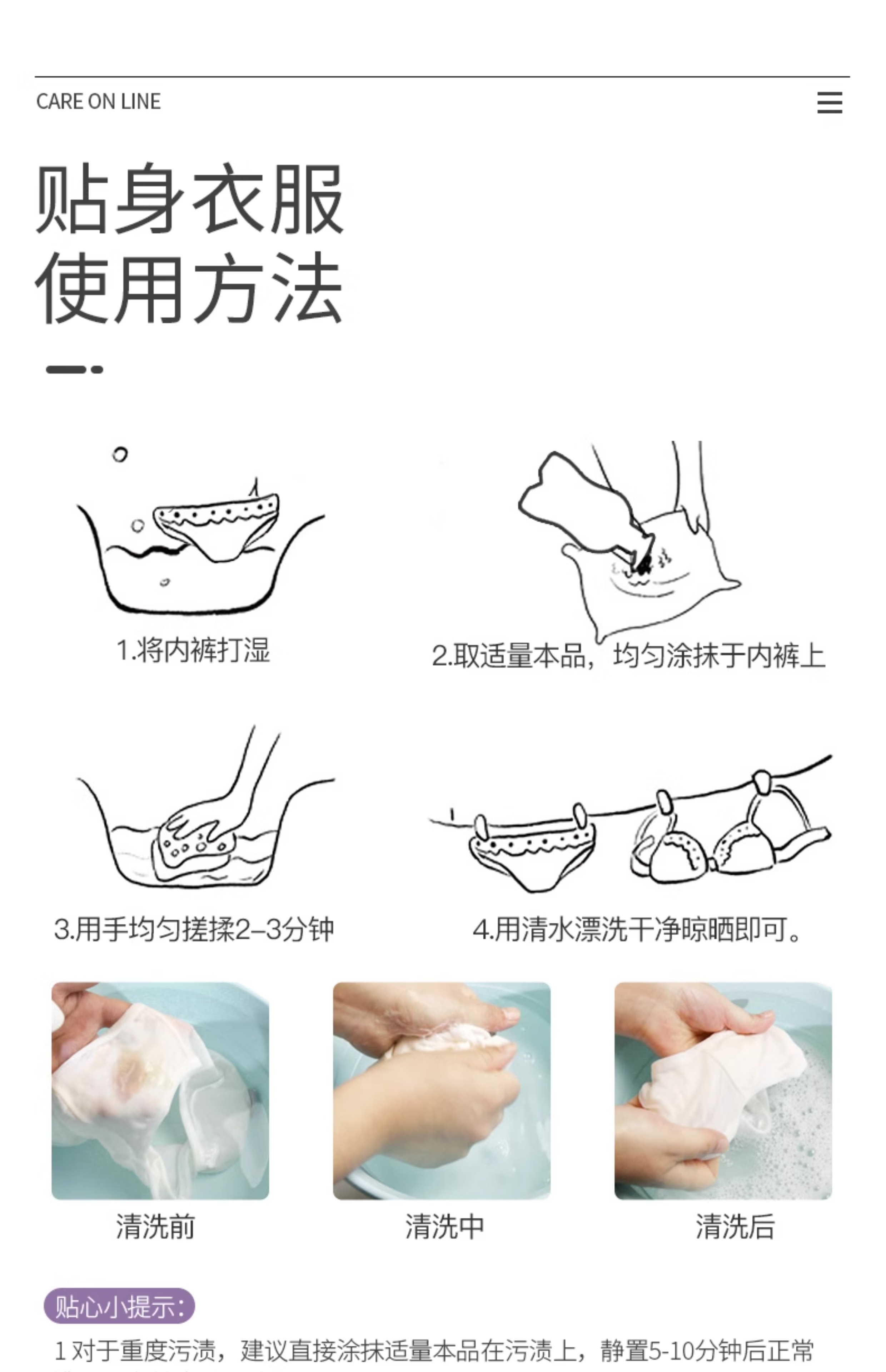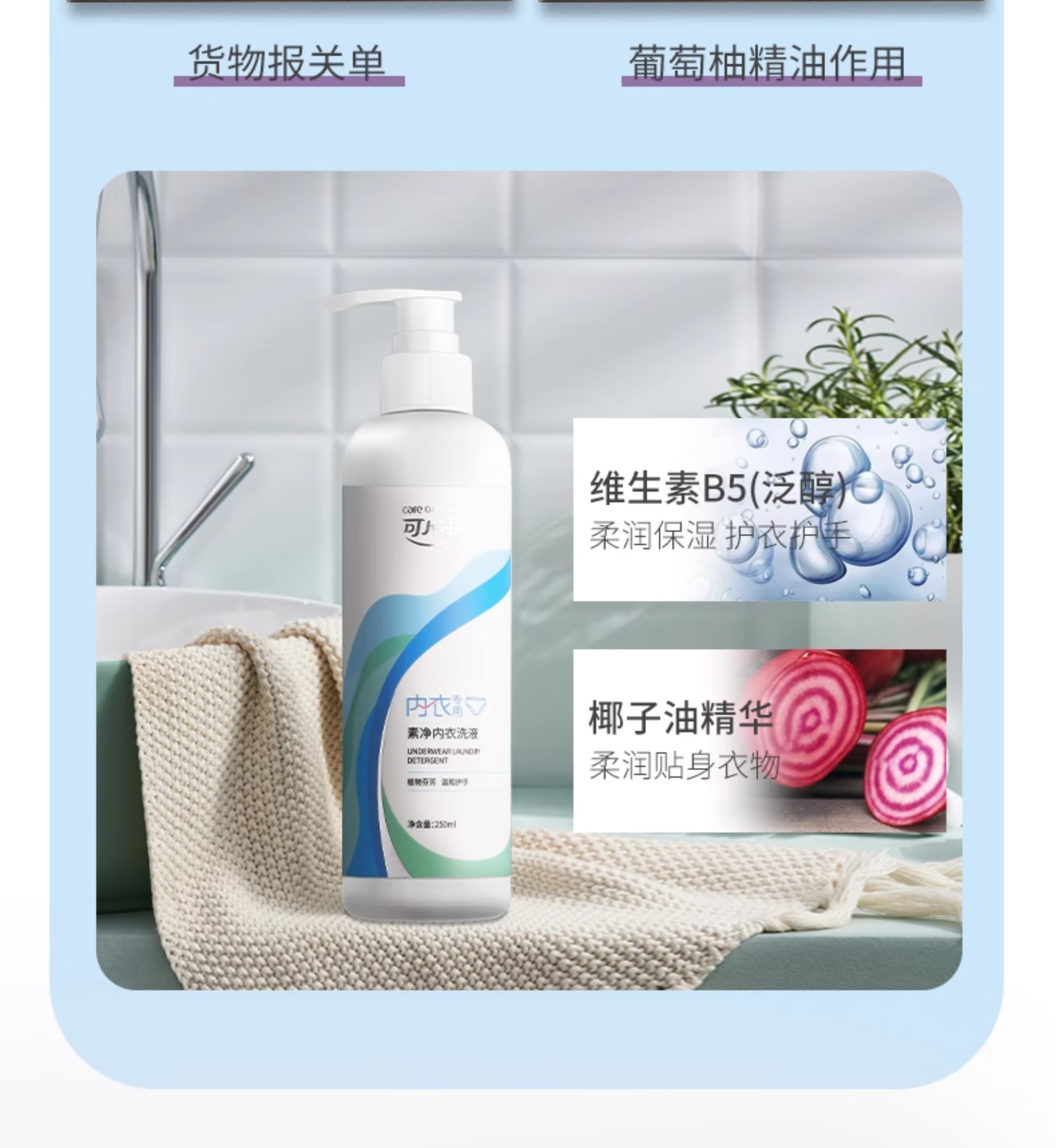 可人净 内衣洗衣液 500ml 内衣内裤清洗液 男女士用 清洁剂 温和不伤手