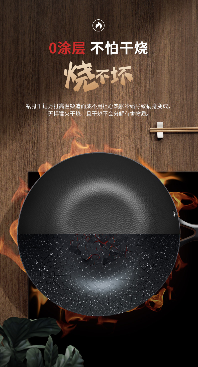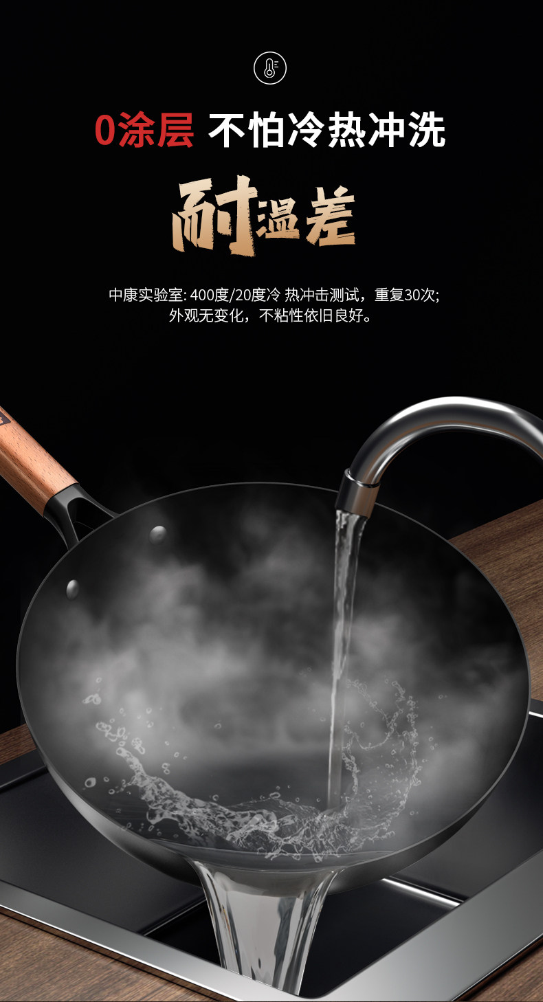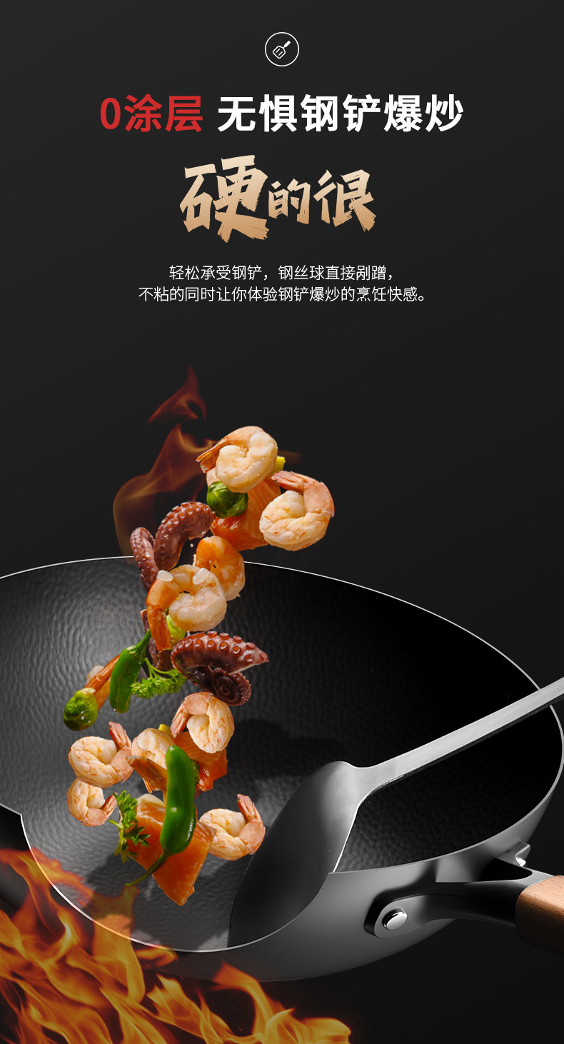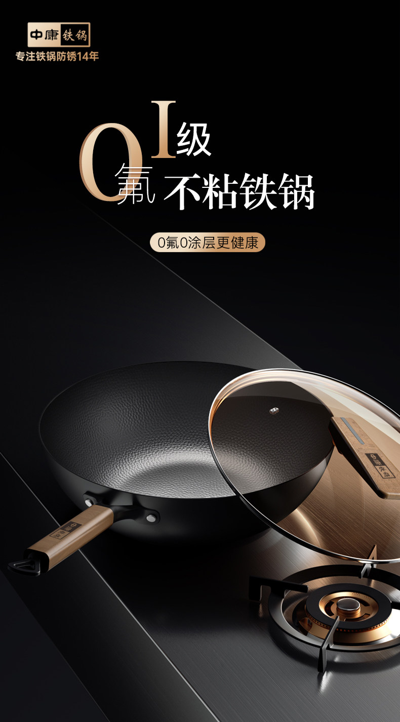 中康铁锅、不粘锅、无涂层、炒锅、家用炒菜锅、电磁炉燃气灶专用