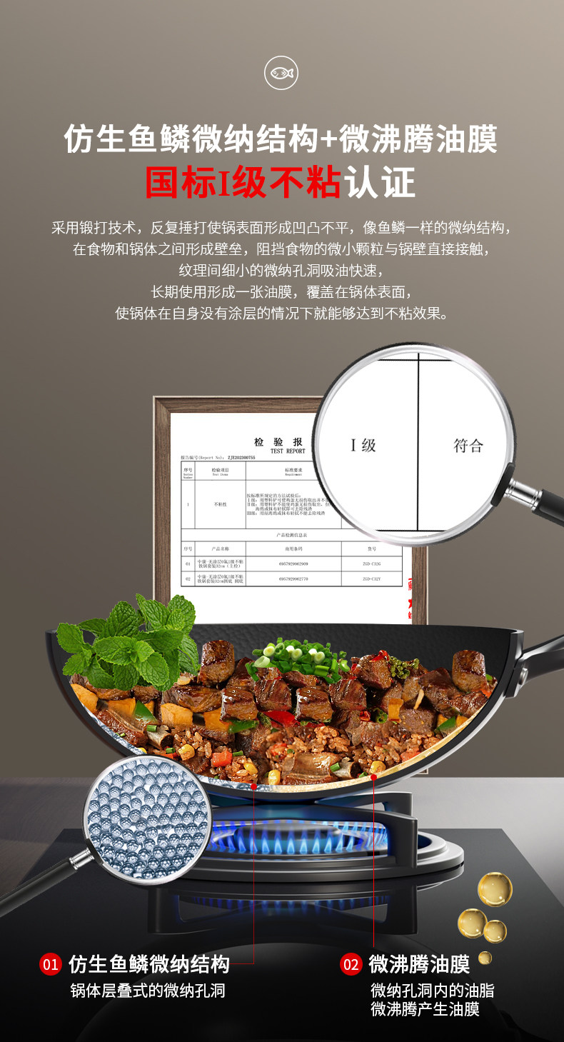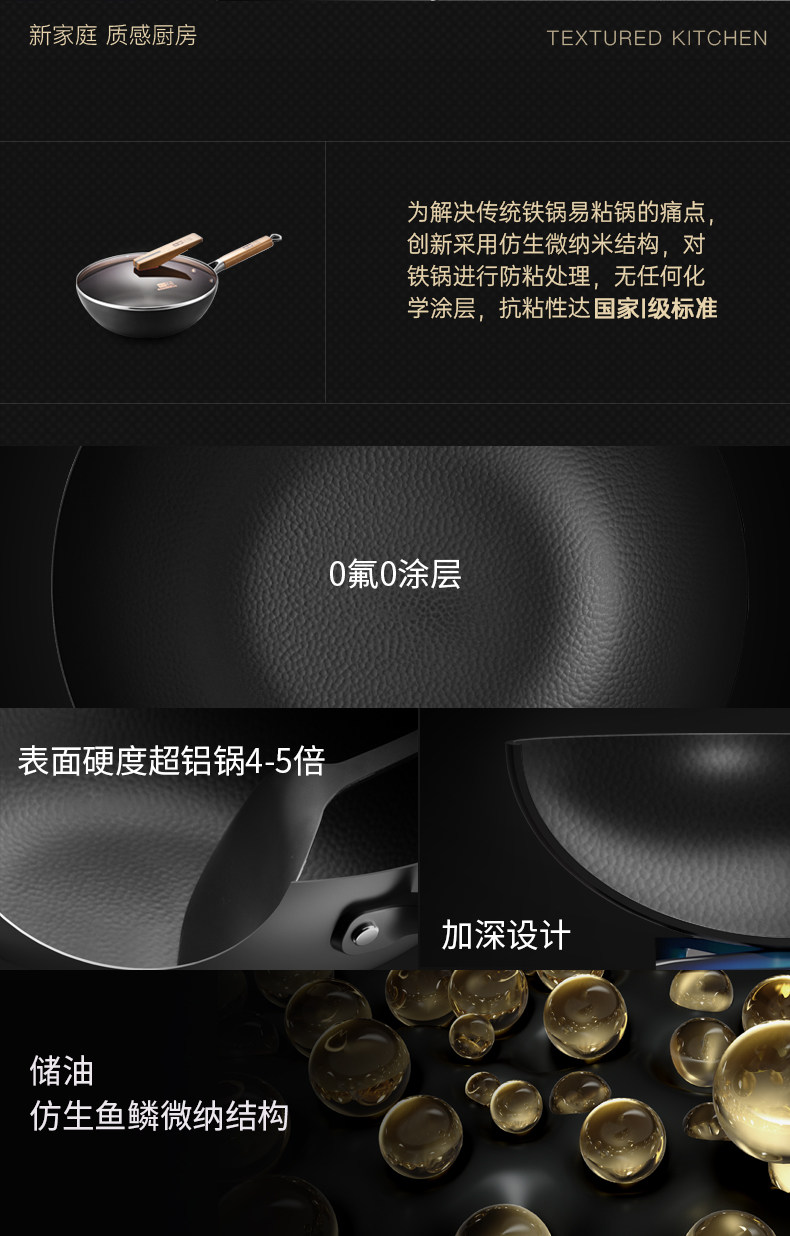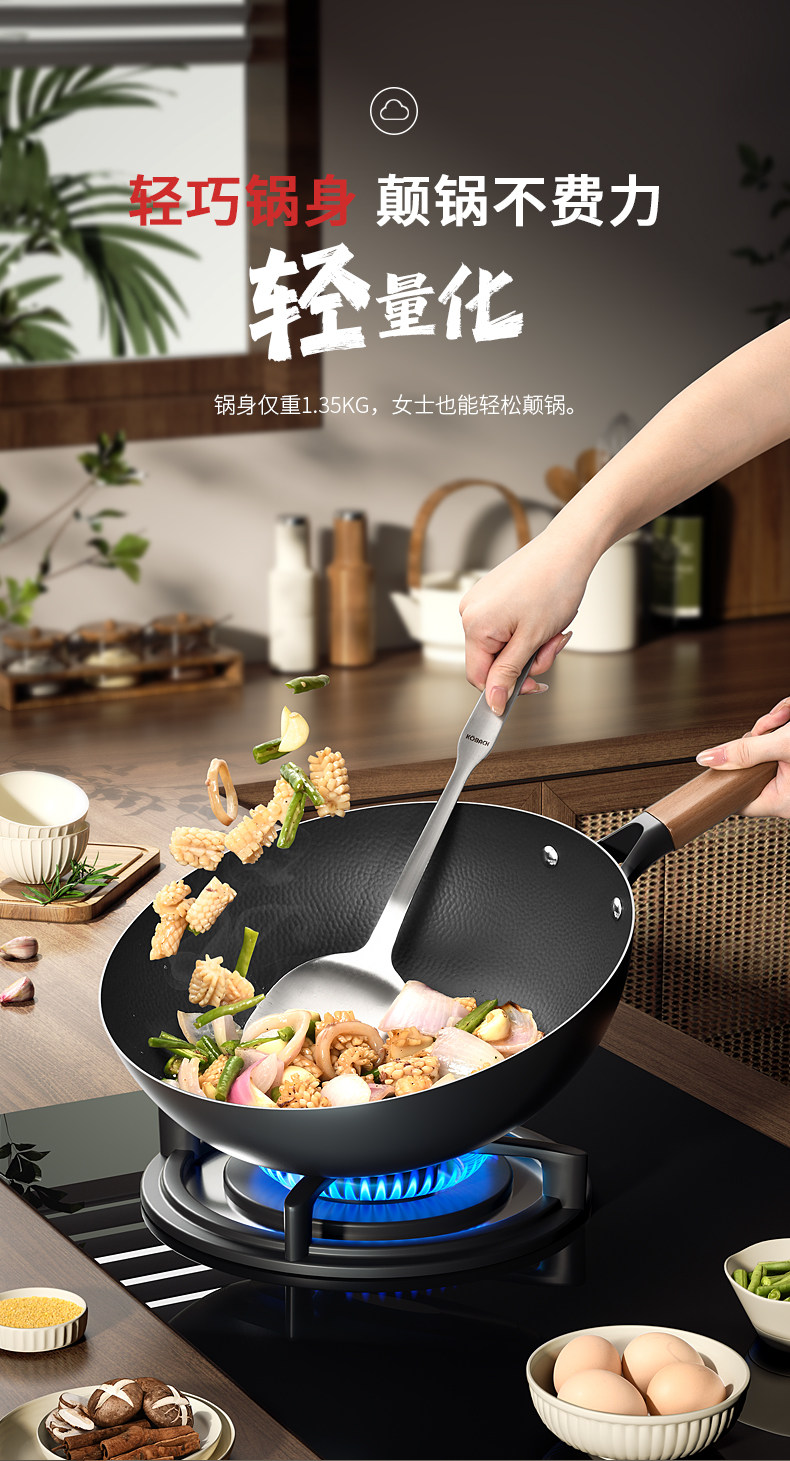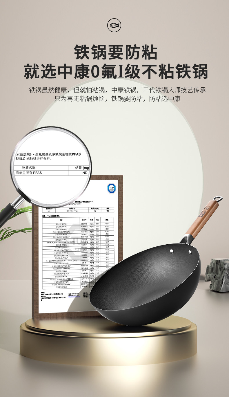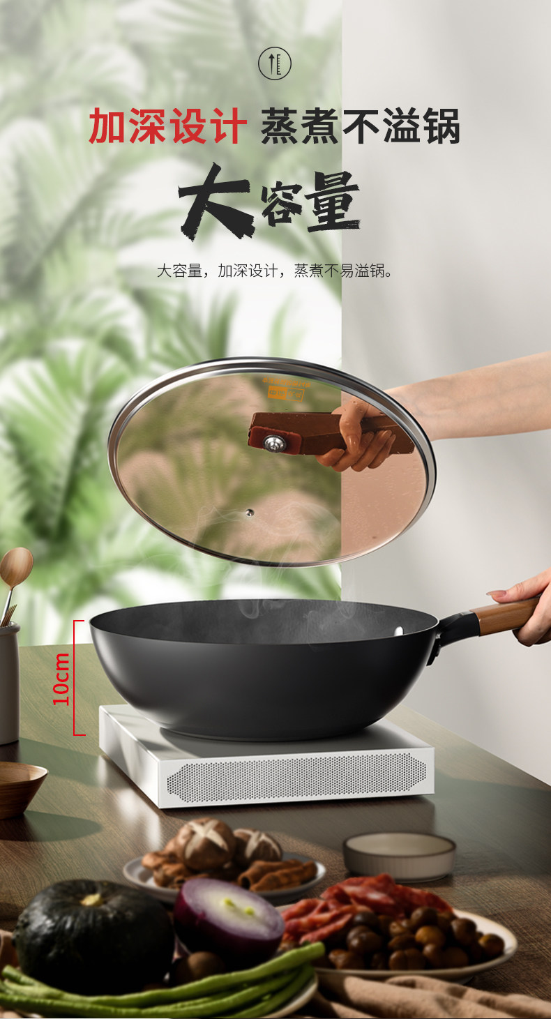 中康铁锅、不粘锅、无涂层、炒锅、家用炒菜锅、电磁炉燃气灶专用