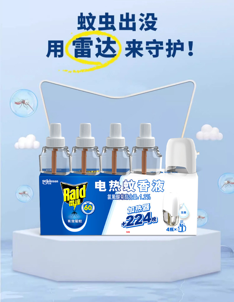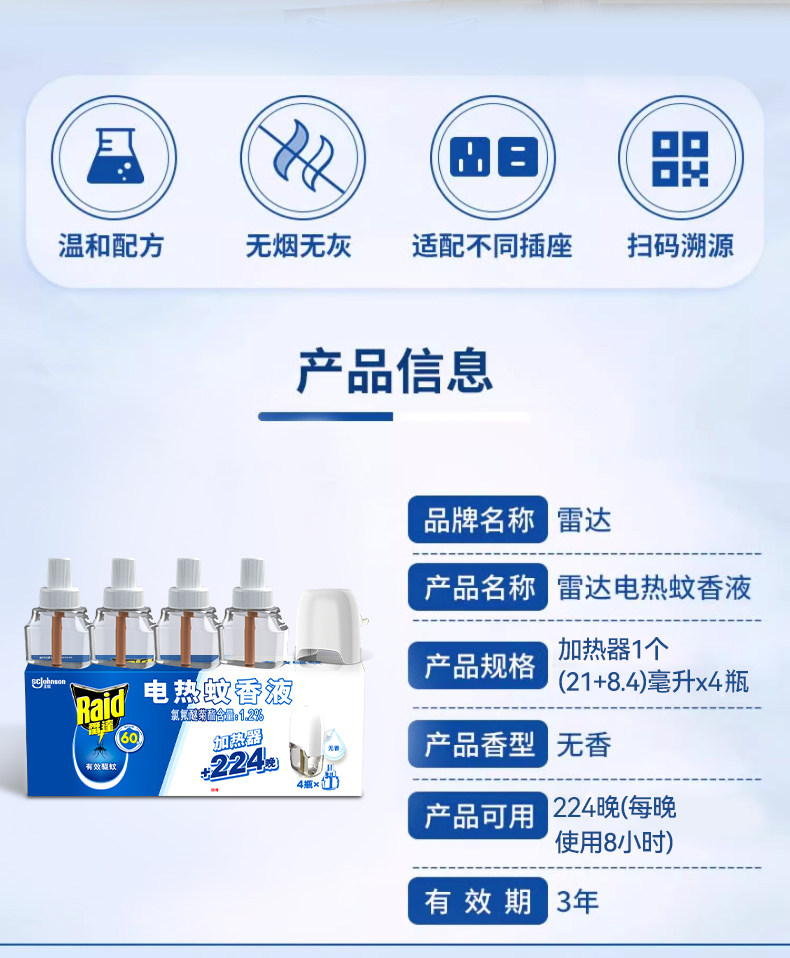 雷达电热蚊香液、插电式、家用、灭蚊防蚊、136晚、无香驱蚊
