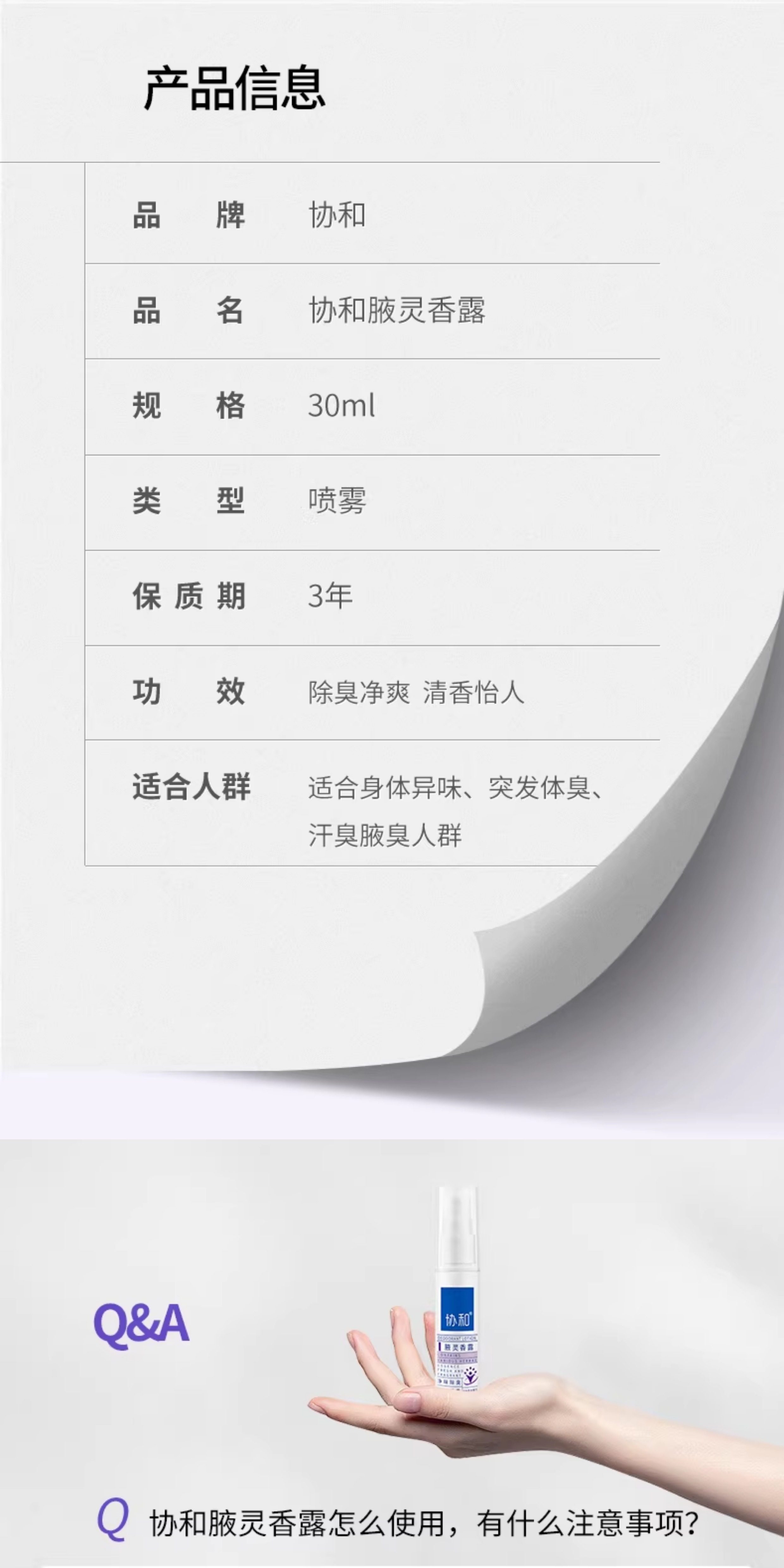 协和腋灵香露、香体喷雾、除臭、腋下异味、狐味净、清香干爽
