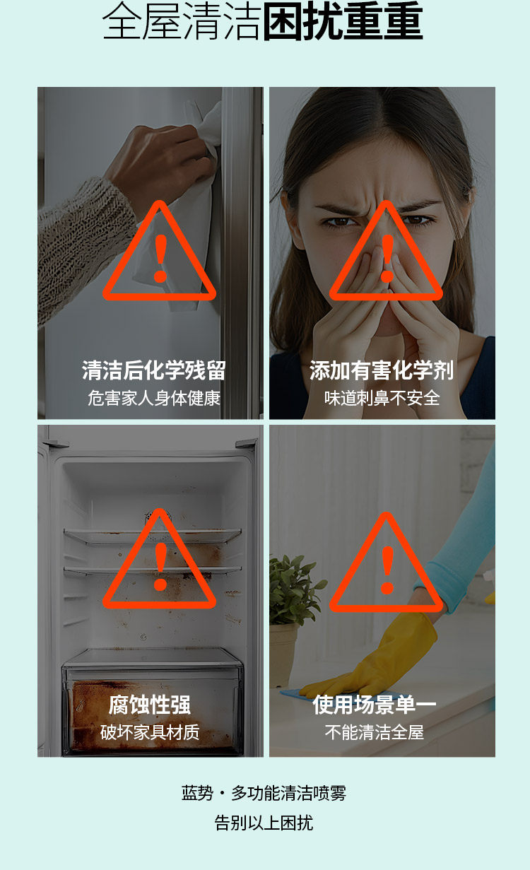 蓝势多功能清洁剂500ml除垢厨房冰箱清洁喷雾强力去油污神器全能